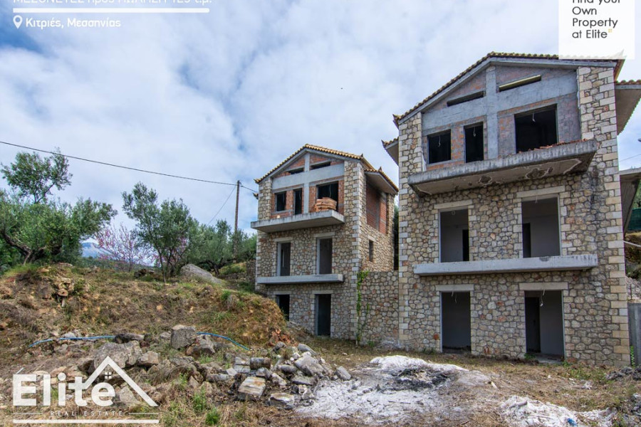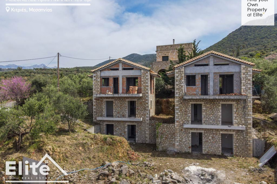 zum Verkauf in Kitries Avias, West Mani, zwei unvollendete Steinmaisonetten von 125 qm. jeweils auf einem Grundstück von 750 m².