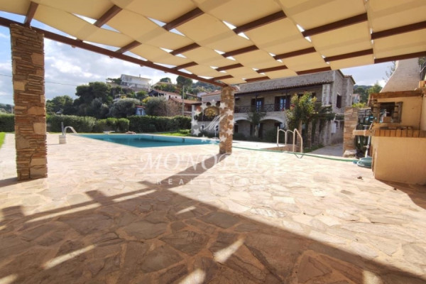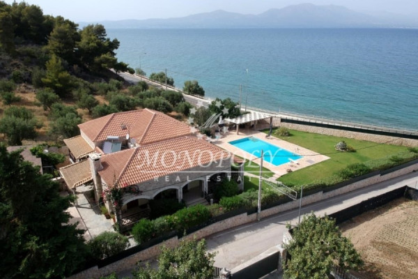 Verkauf Einzelhaus , Kalamos, Vlastos, 444 quadratmeter., Σε οικόπεδο 1700 quadratmeter., 2 Ebenen, 8 schlafzimmer, 4 bäder, 1 WC, 4 Küche, 1 Kamin, Fußboden: Fliesen, frames: Aluminium, 4 parking, baujahr: 1972, Status: Luxuriös, Zertifikat Energie: G, Eigenschaften: Sicherheitstür, Benachrichtigung/Alarm, Abstellraum, Feuerstelle/Kamin , Diele/Mansarde, Interne Treppe, Doppelverglasung, Markise, Terrassen, BBQ/ Grill, Haustiere erlaubt, aus Stein, Luxus, Schloss, Vorderseite, Hell, An Ecke gelegen, Klimaanlage, Sonnenenergiesysteme, Rasen, Bäume, Pool, Garten , Renoviert, Landhaus, Autonom - Wärmepumpe Heizung, blick : Meer, abstand von : Meer (m): 5, preis : 1.550.000€