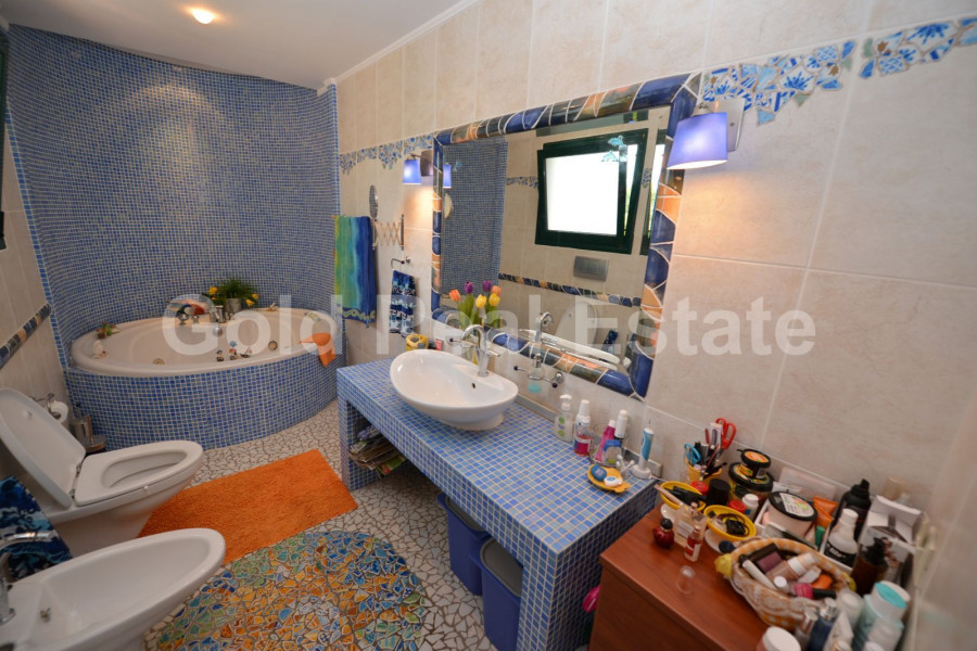 Die Badezimmer sind italienischen Luxus mit Hydromassage. Die Böden sind aus hochwertigen Fliesen. Es hat ein erhöhtes Dach. Die 2 Etagen sind durch eine sehr elegante Holztreppe verbunden.