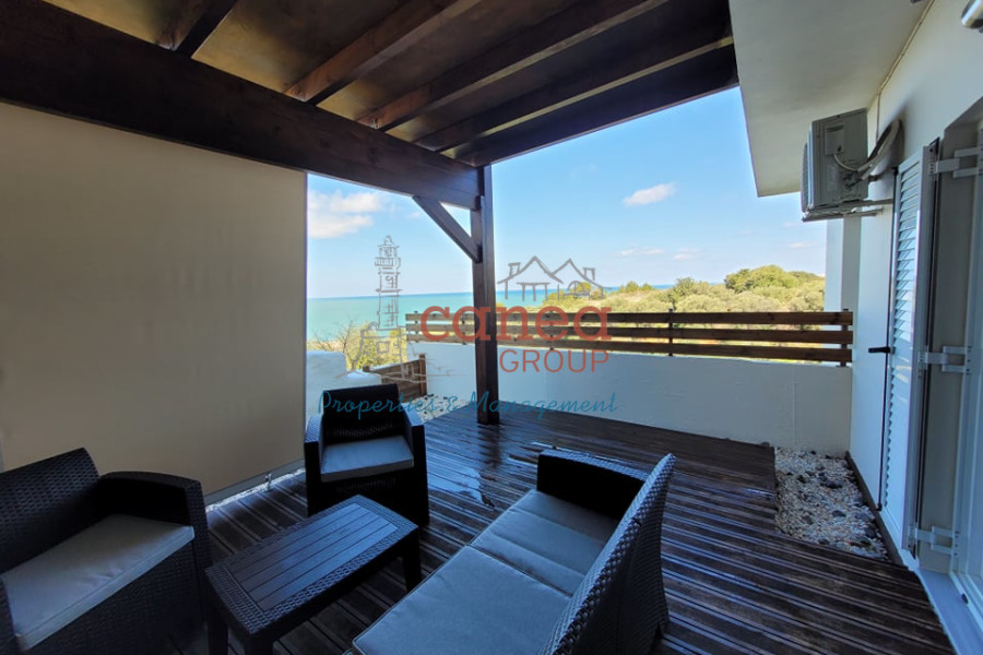 Die Wohnung befindet sich im Erdgeschoss und verfügt über einen ununterbrochenen Meerblick und einen schönen Blick auf den Sonnenuntergang. T besteht aus zwei Schlafzimmern; ein Badezimmer; ein großes Wohnzimmer; ein separates Zimmer für die Küche und ein kleiner Flur.