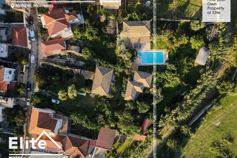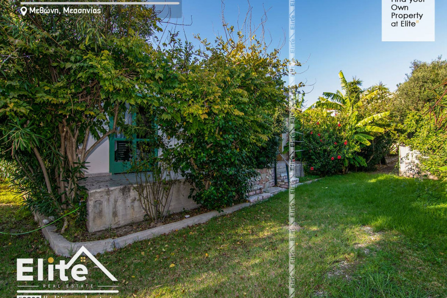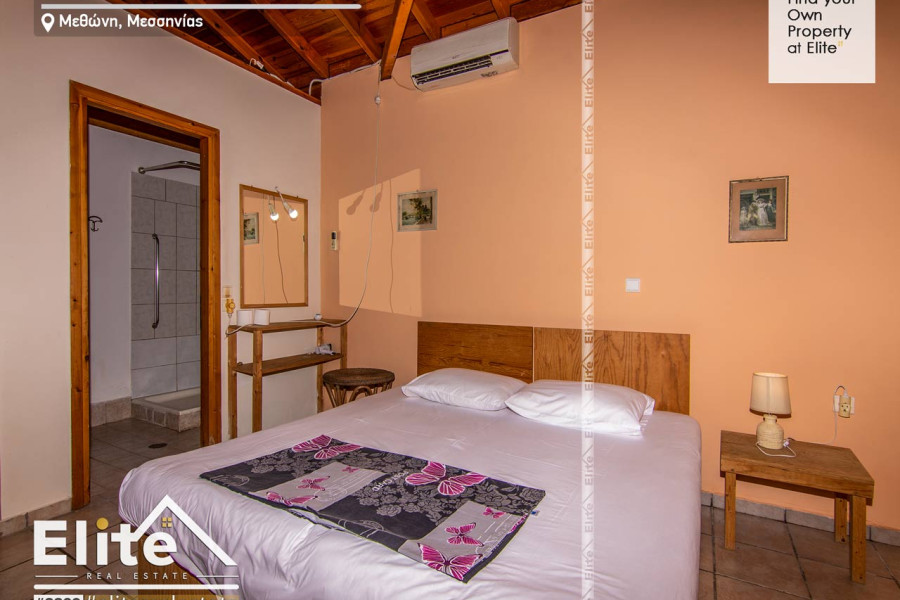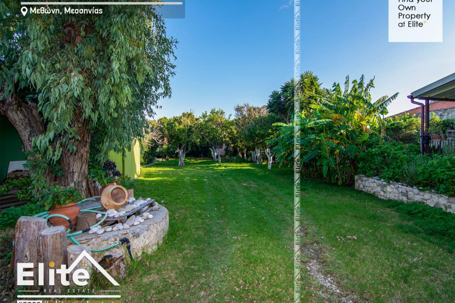 Ein erstaunliches Land im Zentrum von Methoni mit grünen Pflanzen und Bäumen, die bis heute als Komplex aus touristischen Einrichtungshäusern verwendet wurden, ist jetzt zum Verkauf erhältlich.