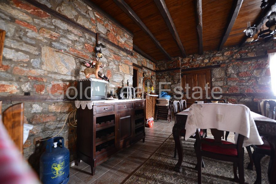 Einfamilienhaus in der östlichen Olympus. Aus fantastischen Stein, in einer schrecklichen Umgebung voll von Bäumen und Grün. Eine robuste Konstruktion mit Wänden einen halben Meter gebaut. Es ist 120 Quadratmeter und das Grundstück von 237 Quadratmetern. Im Garten gibt es einen Grill und Holzofen. Es besteht aus zwei Ebenen. An der Unterseite ist der Weinkeller und das Lager. Und auf der oberen Ebene befinden sich drei Schlafzimmer, eine Küche und ein großes Wohnzimmer. Neben der Küche befindet sich ein Esszimmer. Das Haus ist mit Stein und Holz eingerichtet. Das Wohnzimmer verfügt über einen traditionellen Kamin. Es gibt Sicherheit in den Bau Eisen-Fenster und Außentür. Das Haus ist mit Archäologie Spezifikationen gebaut. Keine zusätzliche externe Grundlage für die Erweiterung. Das Haus wird von einem Generator mit Strom versorgt. Eine fantastische Gelegenheit in einer idyllischen Umgebung.