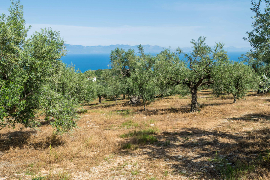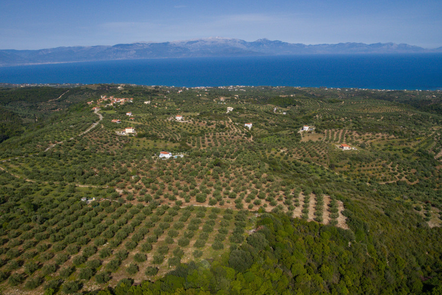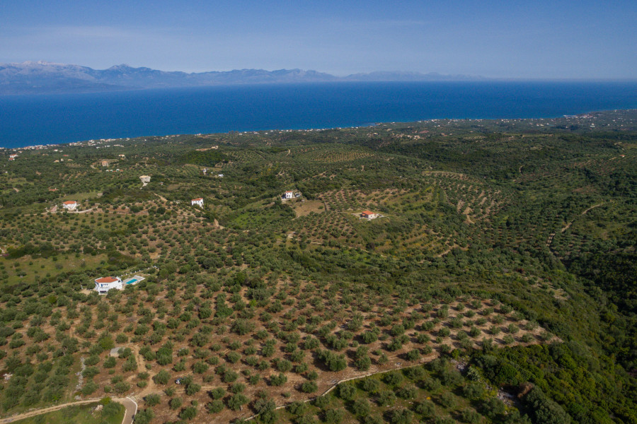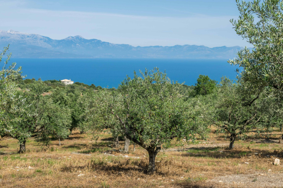 Das Grundstück bietet einen spektakulären Blick auf die gesamte Messinianer Bucht und ist umgeben von rollenden Hügeln und Olivenhainen.