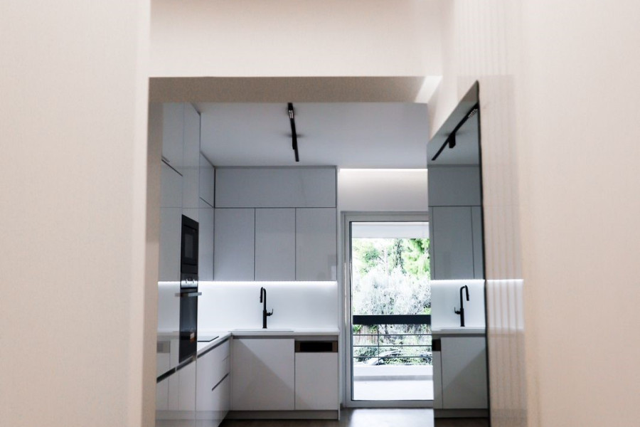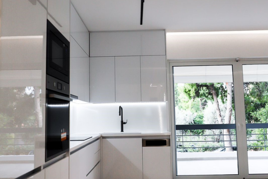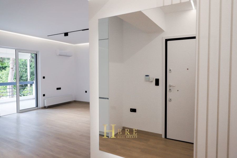 Wohnung 92 sq.M. in Glyfada, 1st floor, built in 1987, fully renovated in September 2023, consisting of 3 spacious bedrooms, 2 bathrooms, open-plan kitchen with living room, large veranda with opening and view, has autonomous heating, air conditioning, aluminum frames, Doppelverglasung, Türsicherheit und Alarm, eingebrauchte Elektrogeräte, Lagerung und Eichenböden. Es befindet sich in der Nähe eines Marktes in einer wunderschönen Nachbarschaft.