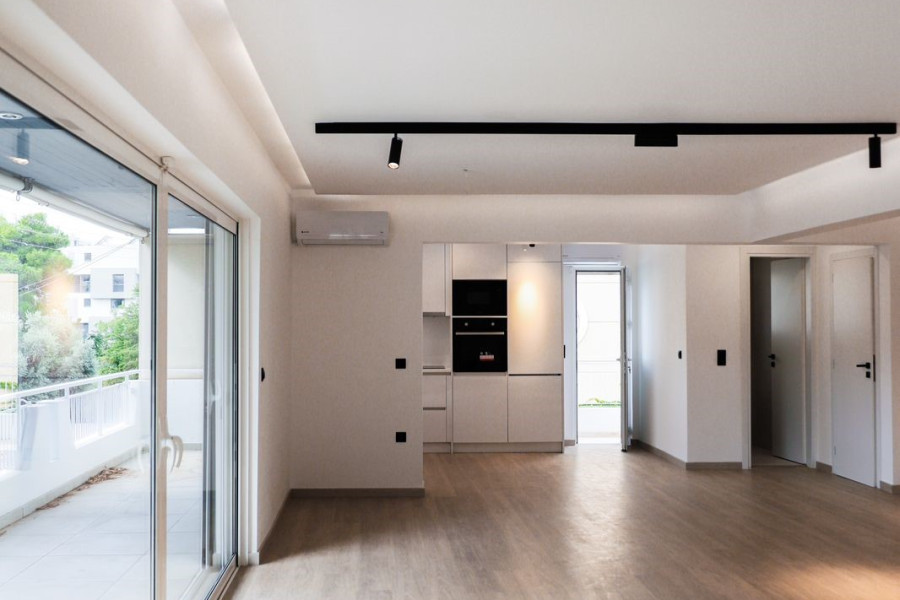 Wohnung 129 mmsm.m. In Glyfada, 1. Stock, 1974 erbaut und im Jahr 2023 vollständig und modern renoviert, besteht aus einem großen hellen Wohnzimmer, einer offenen Küche mit eingebauten Elektrogeräten, 3 geräumigen Schlafzimmern (1 Master), 2 Badezimmern und 1 WC, Wäscherei, Wäscherei Zimmer und große Veranda. Es verfügt über autonome Erwärmung mit Strom, Klimaanlage in allen Bereichen, Sicherheitstür, Alarm, Aluminiumrahmen, Eichenböden und 1 Parkplatz. Es liegt ganz in der Nähe des Marktes und 850 m vom Zentrum von Glyfada entfernt.