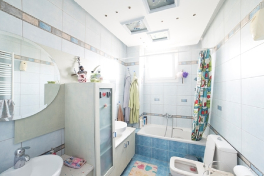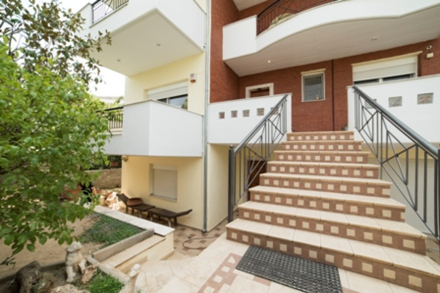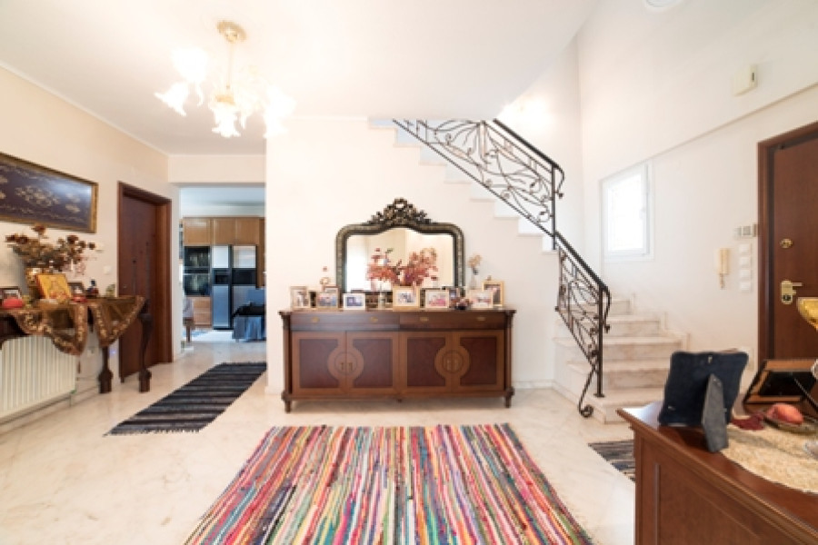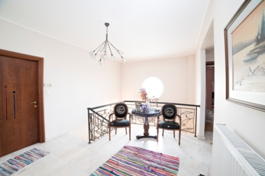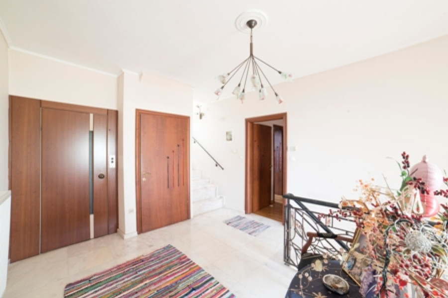 Maisonette mit Buntglas im WC, verzierte Innentreppengeländer, Schmiedeeisengeländer auf der Terrasse, Whirlpool im Badezimmer im 2. Stock. Solide Küchenschränke mit Mielle -Geräten. Interner Aufzug.