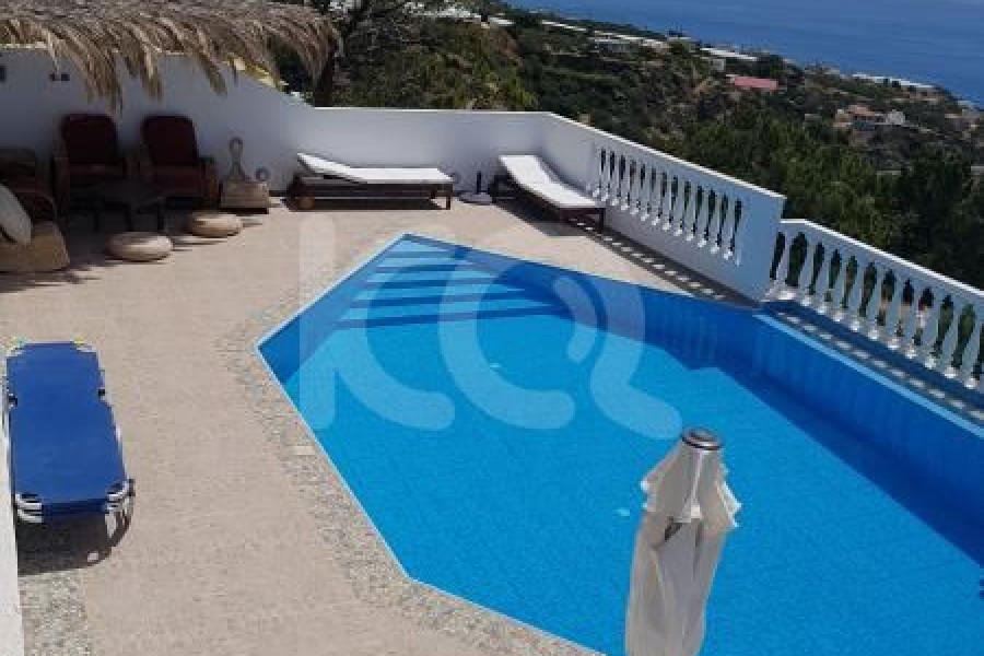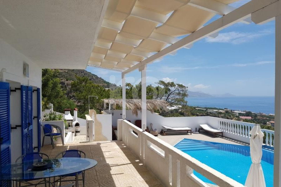 N. Lasithiou, Makris Gialos: Achlia-Gebiet. Villa zum Verkauf 105 qm auf 4000 qm Grundstück mit Meerblick. Baujahr 2000, Renovierung 2016. Es besteht aus 3 Schlafzimmern, 1 Küche, 1 Wohnzimmer, Abstellräumen, 2 Badezimmern. Es ist möbliert, ausgestattet, mit Elektrogeräten ausgestattet und verfügt über einen Kamin, Klimaanlagen in allen Bereichen, Solarwarmwasserbereiter, intelligente Steuerung, Außenbereiche mit Swimmingpool, Grill, Spielplatz, Parkplätze. Preis 490.000 €