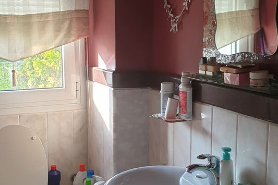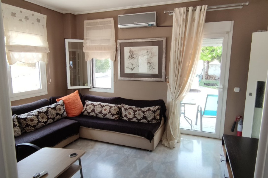 Das Erdgeschoss von 100 m umfasst Wohnzimmer, Küche, WC und Wohnzimmer (Schlafzimmer).