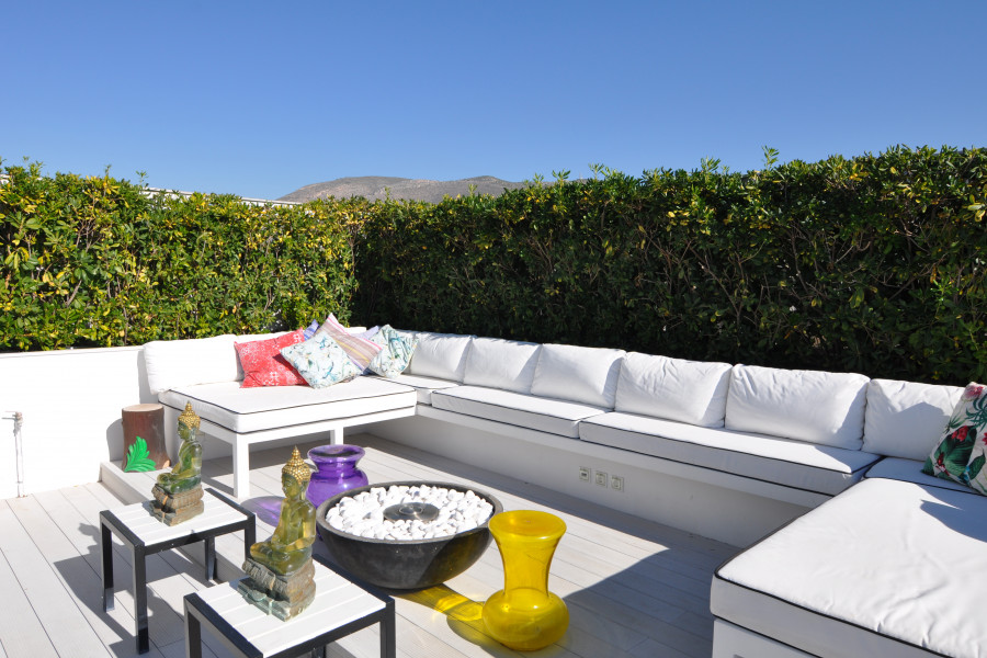 LUXUS ATHENIAN RIVIERA PENTHOUSE vom Feinsten ENTHÄLT: Ebene 6 = 210 qm Privater DACH Garten / BBQ / Bräunen Level 5 = 210 qm Luxuswohnung mit 3 Doppelzimmern / 3, 5 Bädern + 70 qm Balkon Level LG = 45 qm Bonus WOHNUNG. Ideal als Büro- oder Kinderretreat- / Spielzimmer- oder Schwiegerelternquartier ODER Wohnhilfequartier GARTEN = 330 m² Maßgeschneiderter privater Garten mit Schlüsselzugang / Ideal auch für den privaten Pool Dieses unglaublich opulente, schicke und nach US-amerikanischem Standard gebaute und gestaltete Penthouse ist ein Traum für Entertainer im exklusiven und begehrten Athener Strandvorort Glyfada und bietet Blick auf den Saronic Golf von seiner privaten, idyllischen und einzigartigen Lage im 5. Stock. STUFE 6 Dach / Sonne Wohnraum -Das Juwel dieses Anwesens am Meer befindet sich im sechsten Stock, romantisch und jenseits des malerischen Daches mit zusätzlichem Wintergarten. -Integriert in das Penthouse auf der fünften Ebene, unterhalten, entspannen und speisen Sie sowohl im Sommer als auch im Winter in Privatsphäre, Komfort und Stil. - Gepflegt, wetterfest und mit einer Gesamtfläche von 180 m² (150 m² können in den Wintermonaten eingeschlossen werden) bilden die gepflegten Hecken, die Feuerstelle und die Küchenzeile im Freien das ultimative private Wintergartenschutzgebiet. -Panoramablick verwöhnt das Auge mit freiem Meer- und Bergblick auf den Saronischen Golf (Inseln Ägina und Salamina). - Völlig privates Dachleben im sechsten Stock: das im Winter umschließt. -Elektrische Decke (öffnet und schließt) -Schöne Absicherung -Kräutergarten -Feuerstelle -Tagesbetten -Lesebereich -Essbereich -Sitzbereich -Power Points und Datenpunkte im gesamten -LED-Beleuchtung -Bar (mit versteckten Schränken) -Kundenspezifische Schränke -Kundenspezifischer Gasgrill mit Industrieabgasen -Pro Außenkühl- und Gefrierschrank -Kochnische -SONOS Soundsystem