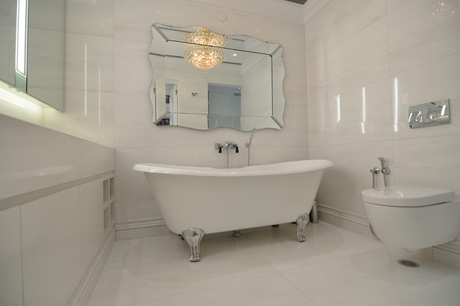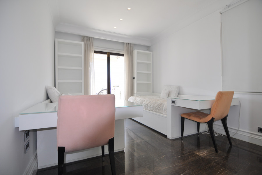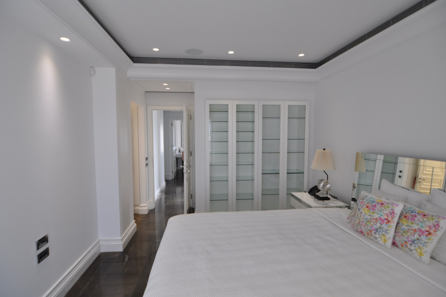 Schlafzimmer Das luxuriöse Penthouse am Strand kombiniert Stil, Ruhe und außergewöhnliche Aussichten und verfügt über ein Hauptschlafzimmer mit Biancissimo-Marmor en suite, eine Vintage-Fußbadewanne von Devon & Devon, ein Doppelwaschbecken, eine separate Dusche mit 3 Regenduschen, einen festen Duschkopf und eine Handbrause Wasser. Ein außergewöhnlicher begehbarer Kleiderschrank mit Bereichen für Kleidung, Schuhe und Accessoires für Sie und Ihn. Ist eine Freude für Modeliebhaber. Zwei weitere Schlafzimmer bieten Bergblick auf den Berg Imittos und zwei Marmorbäder.