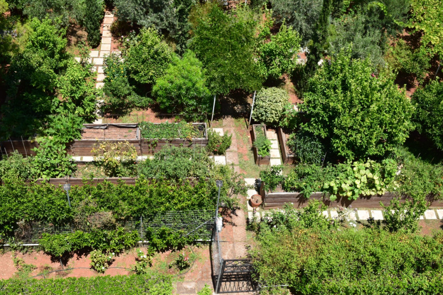 Privater Garten Ein maßgeschneiderter, 330 m² großer privater Garten mit Schlüsselzugang (Titel), der in Athen einzigartig ist - Erhöhte Gartenbeete für bio-dynamische Bio-Produkte - Spezielle Orchidee aus Zitrus- und Olivenbäumen -Bespoke Rose & Lavendel Garten -Progranate -Grape Reben sowie Zierpflanzen -Automatische Bewässerung -Sitz- / Lesebereich -Floodlights und Power im gesamten -Kompostsystem