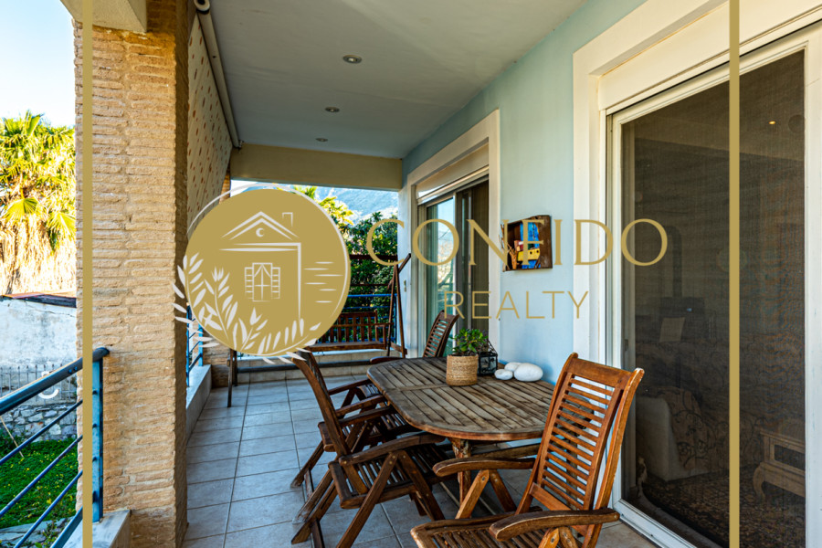 Einfamilienhaus in der Gegend von Mikri Mantineia. Mikri Mantineia liegt nur wenige Kilometer südöstlich von Kalamata und ist eine Küstenabrechnung, ein wichtiges touristisches Ziel von Messinia. Es ist ein beliebter Touristentort mit Tavernen, Cafés, kristallklaren Stränden und Räumen.