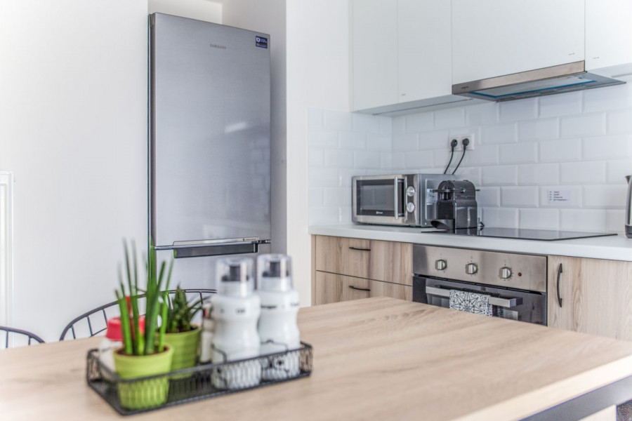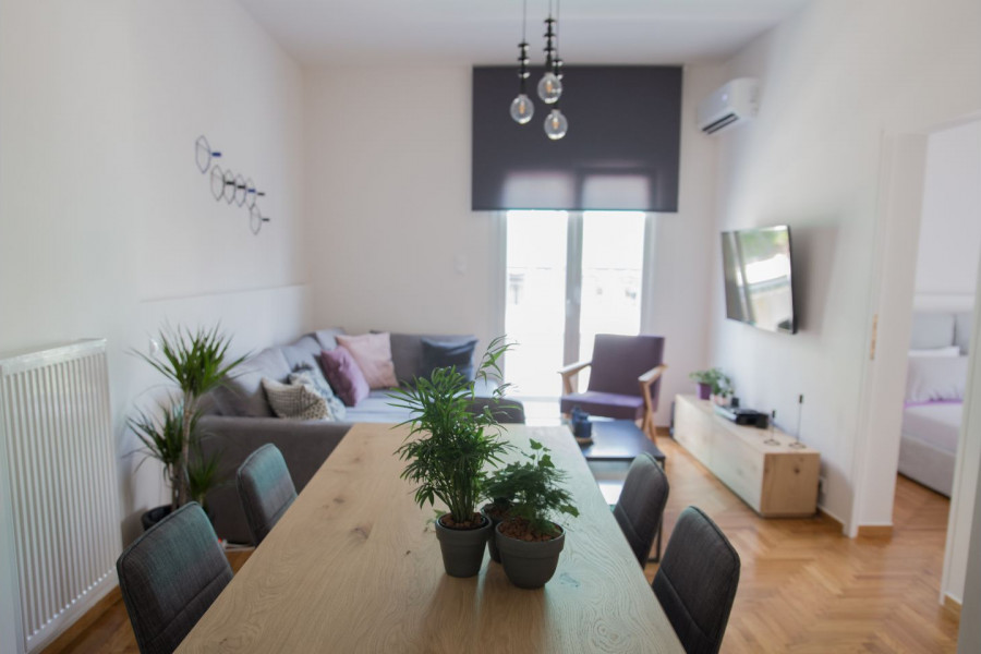 Dies ist eine komfortable, komplett renovierte 3-Zimmer-Wohnung im 4. Stock mit 1 Badezimmer und 1 WC und einer großen Terrasse mit freiem Blick.