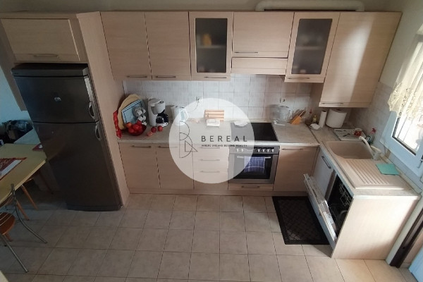 Kassandra, Maisonette 105 sq.m., 2 Levels, 1. Stock, County House, Jahr des Baujahres 2007, Kali, mit Blick auf Meer Veiw, 2 b/r, Wohnzimmer, Kamin, Bad, 1 WC, Küche, doppelseitig , hell, Ecke, Heizung N/A, Kessel, mit Energieklasse N/A, mit Bodentyp Plakaki, mit Synthetika -Tischlerei, Doppelverglasung, Markisen, Schädlingsnetz, interner Treppe, Veranda, Dachboden, Garten, 2 offene Garagen, Preis 280.000 €, Code 1280