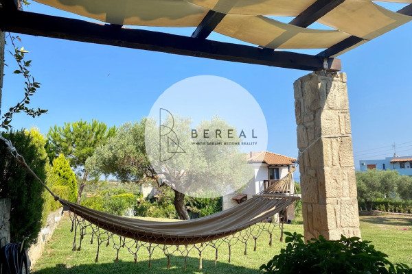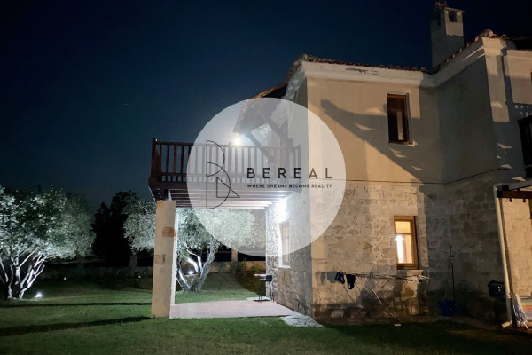 Afitos, Maisonette 80 sq.m. in 550 sq.m. Grundstück, bemalt, Erdgeschoss, 2 Level, Landhaus, Jahr des Baujahres 2015, Kali, mit Blick auf Meer Veiw, 2 b/r, Wohnzimmer, Kamin, Bad, 1 WC, Küche, doppelseitig, Ecke, Kessel, Kessel, Klimaanlage mit Energieklasse N/A, mit Bodentyp Plakaki, mit Synthetika -Tischlerei, Sicherheitstür, Garten 550 mm, 2 offene Garagen, Preis 330.000 €, Code 1268