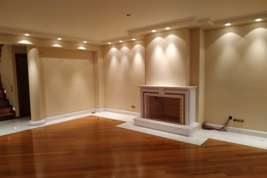 a) Keller von 109 m², das besteht aus Stauraum, Küche, Wohnzimmer mit Kamin und einem Badezimmer.