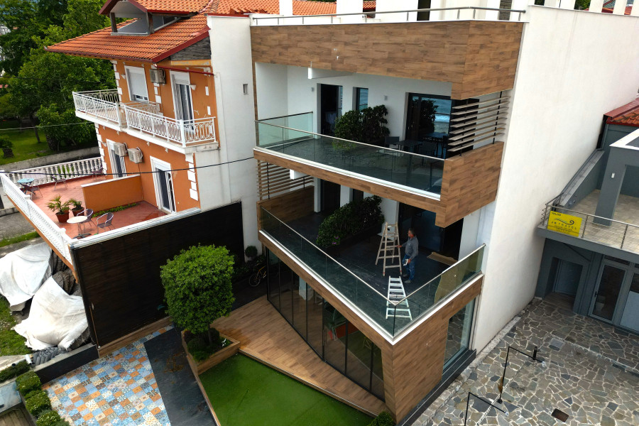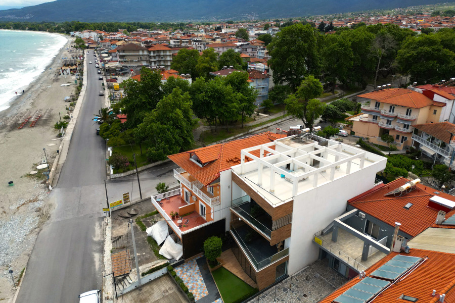 Hotel mit acht Zimmern mit im Erdgeschoss zum Verkauf. Das Hotel befindet sich am Strand von Leptokarya vor dem Meer.