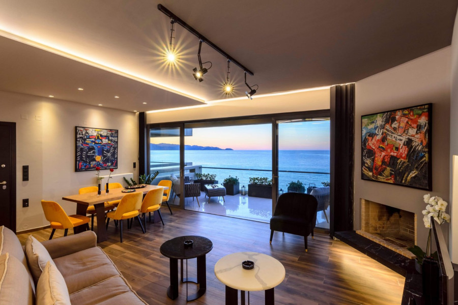 Heraklion Center Coastal Avenue. Zum Verkauf luxuriöser Penthouse -Wohnung zum Verkauf, 98 m², 4. Stock, voll möbliert und mit einem einzigartigen Meerblick ausgestattet. Es bietet zwei Schlafzimmer, ein Einzelzimmer mit Küche, Bad und WC, geschlossene Tiefgarage 12, 50 m2, unterirdischer Lagerung 9, 07 m2 und ist nur wenige Stufen vom Strand und dem Stadtzentrum entfernt. Es wird auf kurzfristigen Mietplattformen mit großem Erfolg gemietet und kann entweder für Eigentümer oder Investitionen gekauft werden.