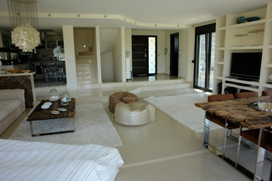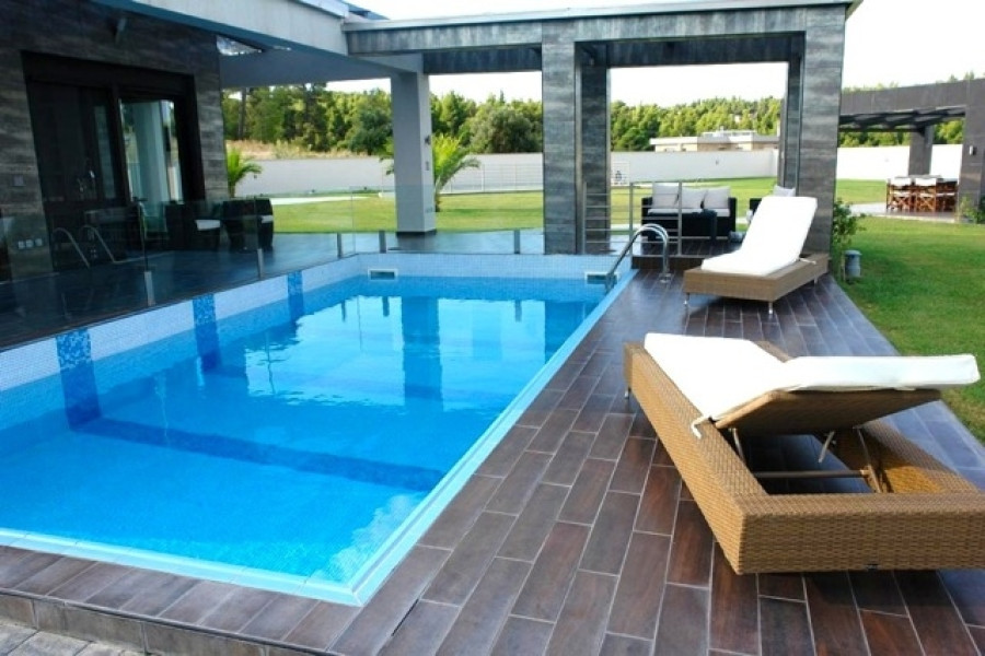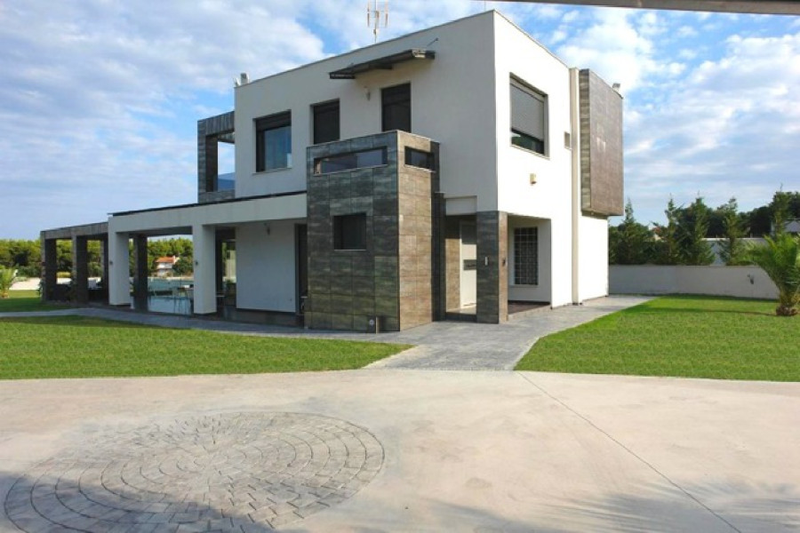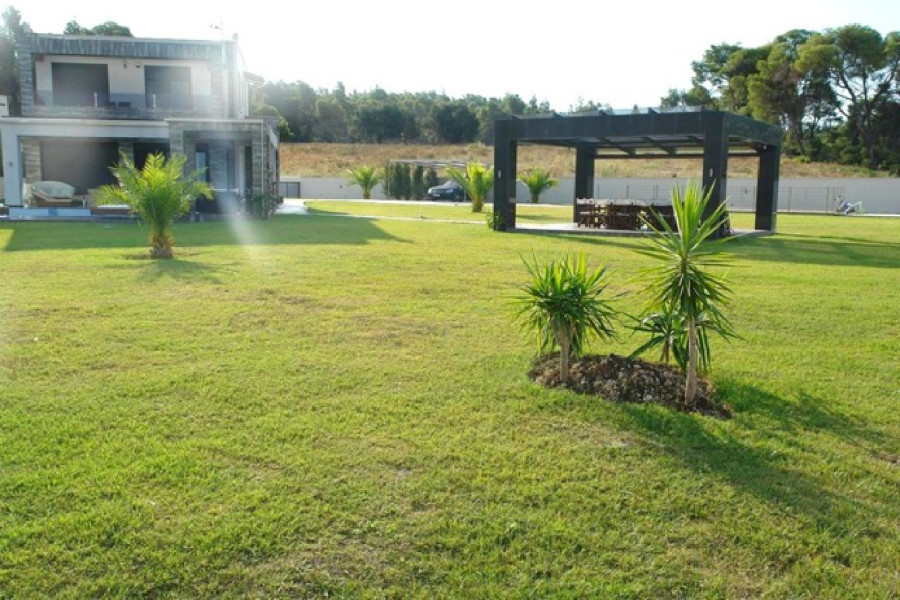 zum Verkauf Ein erstaunliches Luxuriousvilla 270sq.m.sani, Halkidiki. Es gehört einem Wohnkomplex mit autonomen Gärten. Die Villa in idealer Lage in einem grünen Gegend (mitten in Sanys-Wald) mit Blick auf das Meer, mit geringer Dichtegehäuse, nur 5 Minuten vom Strand entfernt.Das Anwesen befindet sich auf einem 2.600 Quadratmetern an Landschaftsland mit einem Pool (5m) x 9m) mit umfangreichen gepflasterten Gebieten um ihn herum. Die Villa breitet sich insgesamt auf drei Ebenen aus. Das niedrigere Niveau (Keller) verfügt über ein in sich geschlossenes Apartment, das ideal für Gäste, Zimmer für Hausmädchen, Waschküche, ein großes Badezimmer und ein Hauswirtschaftsraum. Auf dem Boden flool führt der eindrucksvolle Eingang in ein offenes Wohnzimmer und ein Esszimmer mit großen Fenstern, die ausreichend natürliches Licht lindern. Es gibt auch eine modernste Küche und ein WC. Im ersten Stock treffen wir drei Schlafzimmer, eines von ihnen ist der Master (45 m²) mit eigenem Bad und separatem WC und einem Extrabatroom, der andere zwei Schlafzimmer serviert. Das Anwesen ist voll angelegt mit Rasen. Es gibt viele offene Räume für alle Fresko-Restaurants und das äußere Leben. Die Villa steht zum Verkauf mit allen Innen- und Gartenmöbeln, die luxuriös, berühmte Designer wie Minotti, Paola Navone, Phillipe Stark usw., sowie Markenlampen an den Decken und allen elektrischen Appliancies ist. Der Bau des Hauses konnte nicht in Worten oder Fotos ausgedrückt werden, da es wirklich luxuriös ist.