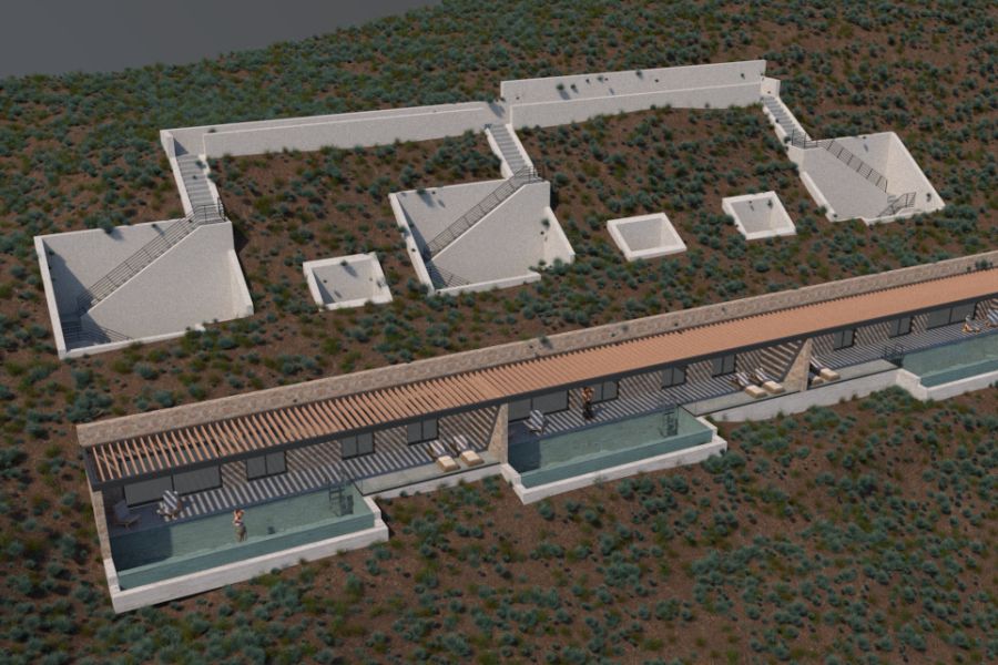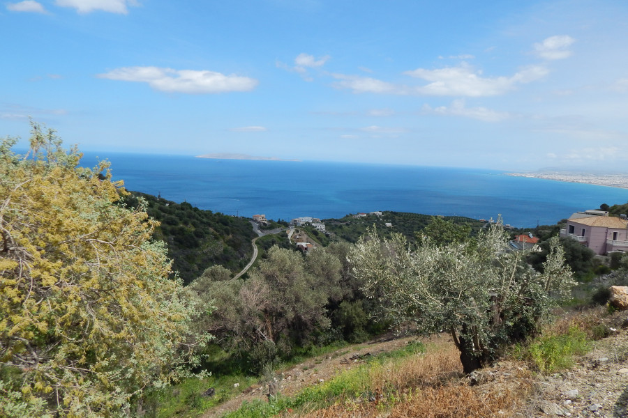 Heraklion Rhodia. Zum Verkauf ein Grundstück von 1457 mm. Amphitheatre mit einem einzigartigen Blick auf das Meer und mit einer Baugenehmigung für drei unterirdische Wohnungen von 95 m². Jede Residenz bietet zwei Schlafzimmer, ein Badezimmer, eine Toilette, eine Terrasse mit Meerblick und einen privaten Pool von 25 Quadratmetern. Sehr gute Investitionen mit hervorragenden Aussichten aufgrund der kurzen Strecke vom Meer und vom Flughafen Heraklion.