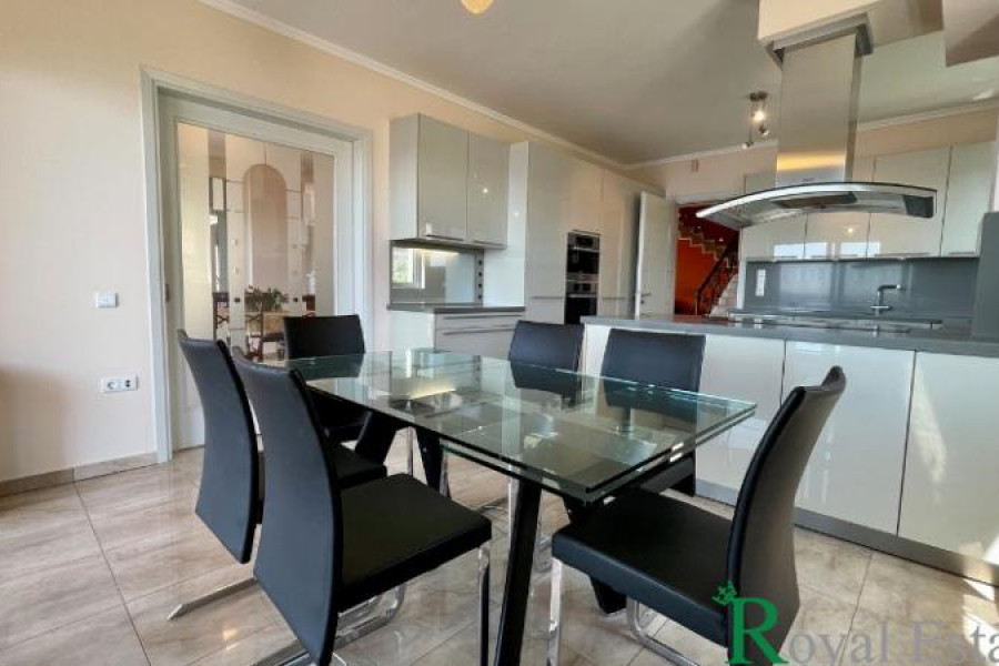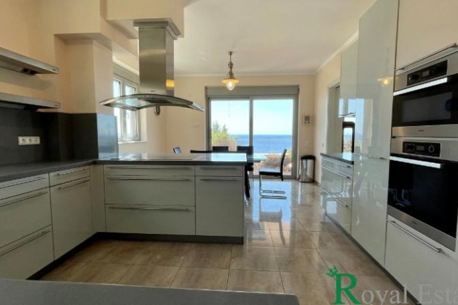 Ort: Marathon, Dikastika. Immobilienpräsentation: Zum Verkauf, einzigartiger Luxus, mit einem erstaunlichen Blick auf den South Euboean Golf und mit direktem Zugang zum Strand, Einfamilienhaus 632 m², drei Ebenen, Fassade, Airy, Jahr des Baujahres 2010, in ausgezeichnetem Zustand , Diagramm 1.084 m², Südostorientierung. Innenräume: Das Eigentum besteht aus, Erhöhtes Erdgeschoss, großes Wohnzimmer, Kamin, Essbereich, große Veranda, unabhängiger Küchenbereich, Gäste -Toilette, Schlafzimmer, Badezimmer. Die Räumlichkeiten bieten eine wunderbare Aussicht sowohl des Meeres als auch des Schwimmbades, das sich auf dem gleichen Niveau befindet. 1. Stock, drei Hauptschlafzimmer mit Badezimmern mit En -Suite, sehr hell und Meerblick. Dachgarten 100 m², offener Raum, Pergola. Keller, Spielzimmer, Gäste -Toilette, Gästezimmer (Küchenzeile, Schlafzimmer, Bad), Waschraum, Lagerraum, Hauswirtschaftszimmer. Ausstattung und Dienstleistungen: Autonomes Ölheizung. Fußbodenheizung. Hochleistungs-Aluminiumrahmen, Doppelverglasung, Bildschirme, elektrische Fensterläden. Aufzug auf allen Ebenen. Keramikfliesen. Eingebaute Elektrogeräte in der Küche. Sicherheitstüren. Alarmsystem. Dreiphasenleistung. Generator. Gegensprechanlage. Großer und perfekt angelegter Garten, automatische Bewässerung. Speicherung im Keller. Drei Parkplätze im Keller.