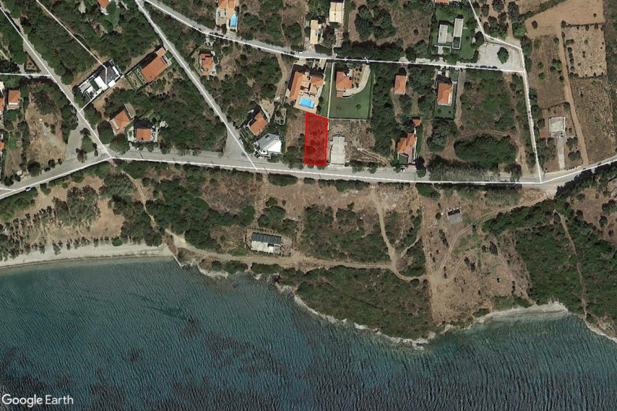 Marmari Kokkinis Siedlungsgrundstück am Meer von 503 m², innerhalb des städtebaulichen Gebiets 130 m² groß. 30 Meter vom Meer entfernt, 150 Meter von einem Sandstrand entfernt, uneingeschränkter Meerblick, 1 km vom Dorf Marmari entfernt.