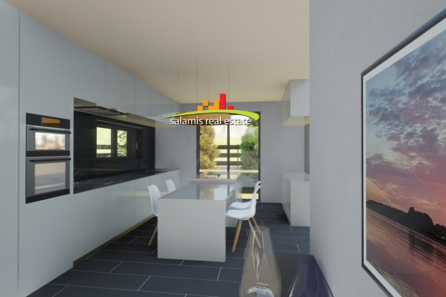 Neu erbaute, beeindruckende Maisonette-Wohnung von 230 Quadratmetern auf einem Grundstück von 410 Quadratmetern in der besten Gegend der Insel, fast direkt am Meer, nur 80 Meter von einem wunderschönen Strand entfernt. Hervorragende Konstruktion mit hervorragender Energieeffizienz. Bereich neu gebauter Luxusimmobilien.