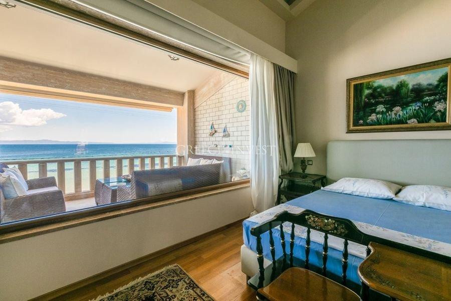Villa in erster Strandlinie mit einer Fläche von 375 qm. plus zwei Mansarden, die nicht in die Gesamtfläche einbezogen sind. Die Villa befindet sich in einem touristischen Ort mit ganzjähriger Infrastruktur. Vor der Villa gibt es einen breiten Sandstrand sowie Tavernen, Cafés und Geschäfte in der Nähe.