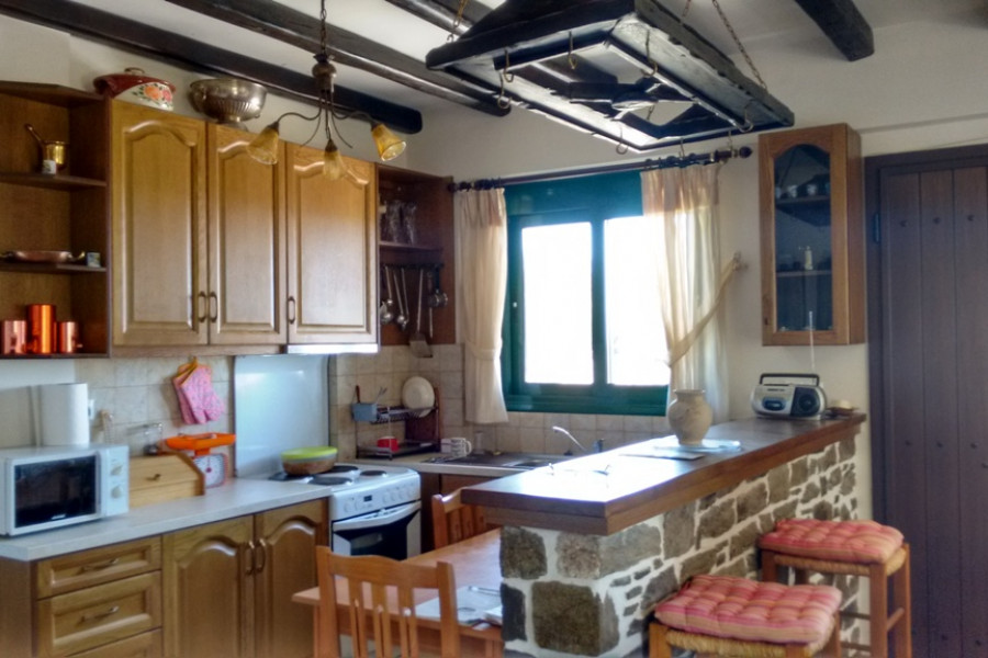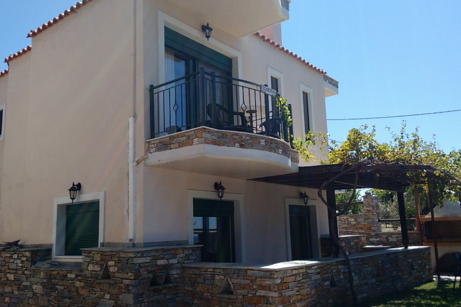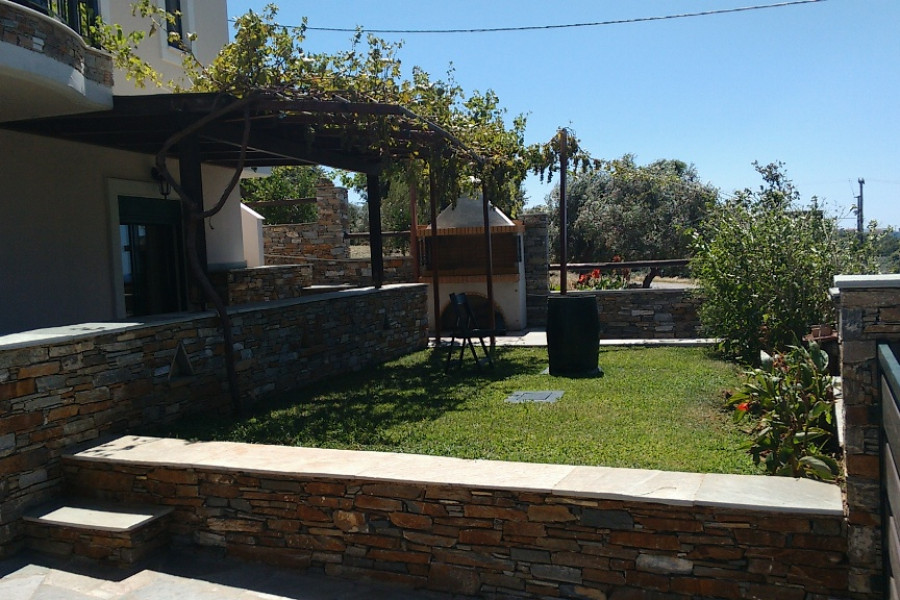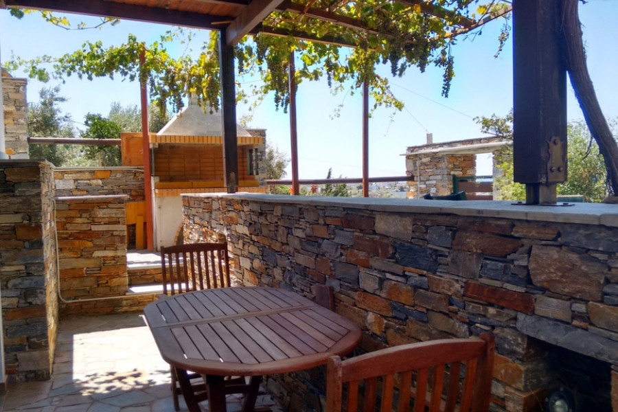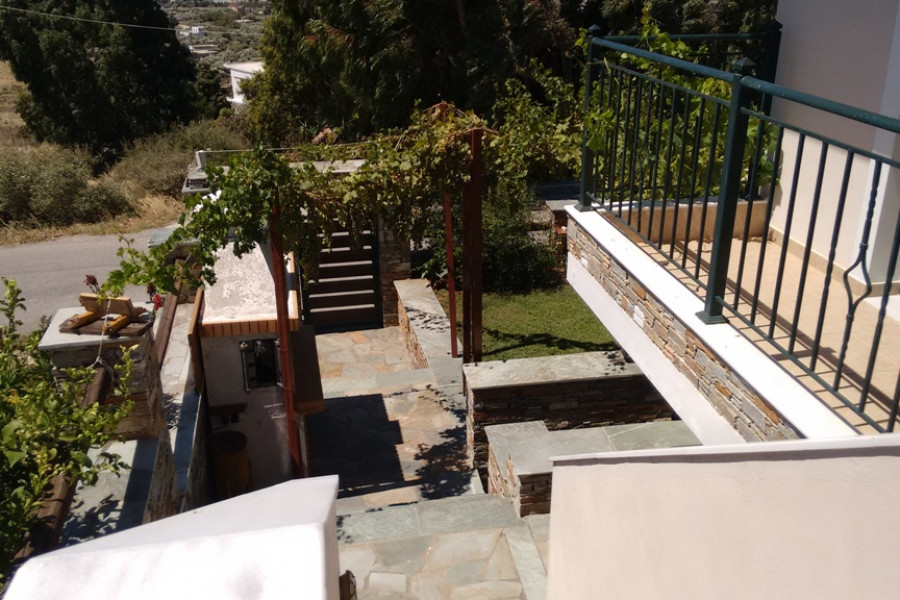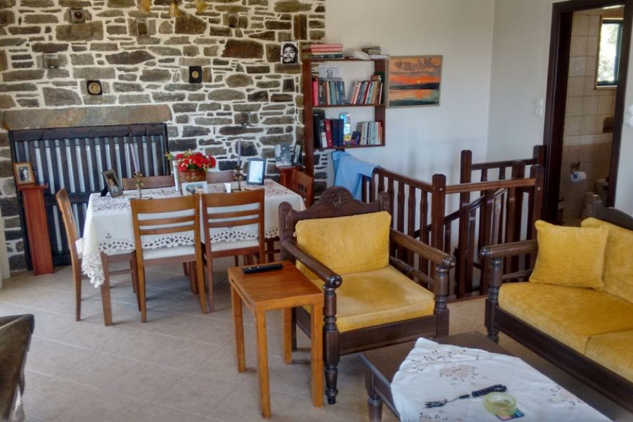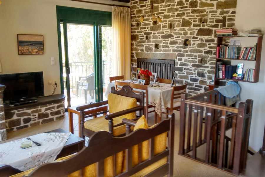 KARYSTOS neu gebautes Einfamilienhaus von 130 qm in 2 Ebenen, Erdgeschoss 1. Stock, 3 Schlafzimmer, 2 Badezimmer, Kamin, im Jahr 2010 in traditioneller Architektur gebaut, auf einem Grundstück von 200 qm. mit einem schönen angelegten Garten mit Grill, ausgezeichnetem und freiem Meerblick, offenem Parkplatz, Lagerung, ausgezeichneter Bauweise in einer Wohnanlage, 1, 5 km vom Meer und dem Zentrum von Karystos