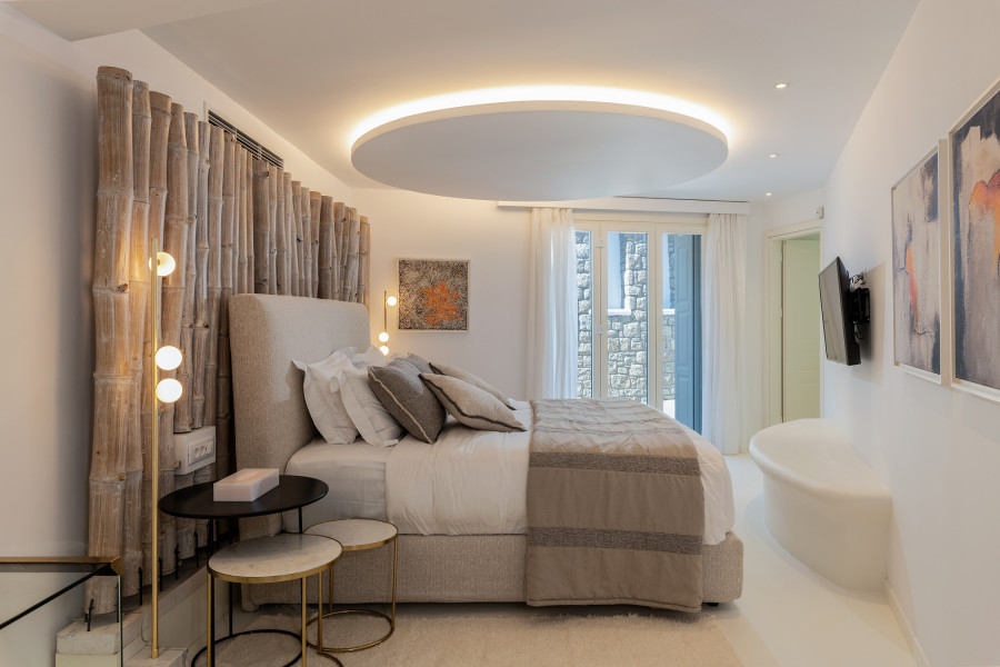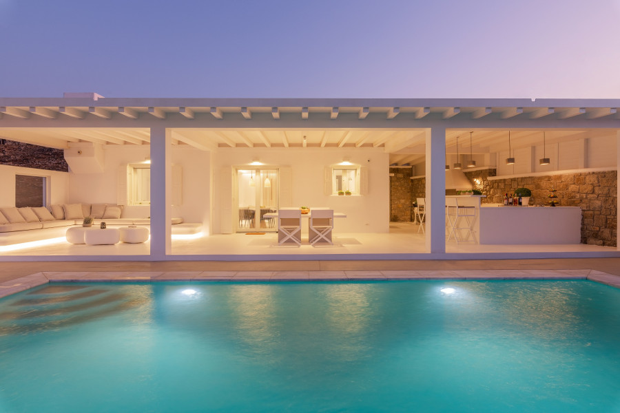 Diese neu erbaute, luxuriöse Residenz bietet 272, 20 m² des Wohnraums in einem 2 Ebenen Anordnung. Es besteht aus 3 sehr geräumigen Hauptschlafzimmern , 2 separate Wohnzimmer mit 2 Gast-WC s und eine voll ausgestattete Küche . Der Außenbereich ist ebenso beeindruckend mit 2 unabhängige Terrassen . Die Terrasse auf der oberen Ebene bildet eine Erweiterung des Hauptlebens Zimmer mit Kokon Wohn- und Essbereich mit unterhaltsamen Einrichtungen wie einem schönen Bar und Grill Ecke. Direkt vor dem überdachten Bereich befindet sich das sonnenverwöhnte Pool und Außendeck . Die untere Terrasse bietet ein abgeschiedeneres und entspannteres Erlebnis mit direktem Zugriff auf die kuratierten Gärten . Auf einem abfallenden Plot festlegen Messen 1.340 Quadratmeter , die Außenbereiche profitieren von großartigen Ansichten der ägäischen Gewässer, die Stadt Mykonos und die kleine Insel Baos mit der malerischen Kapelle St.George.