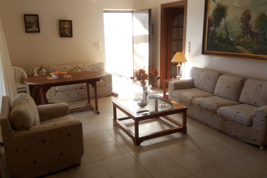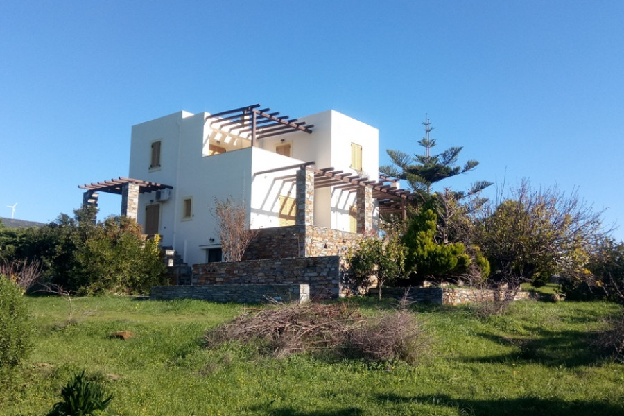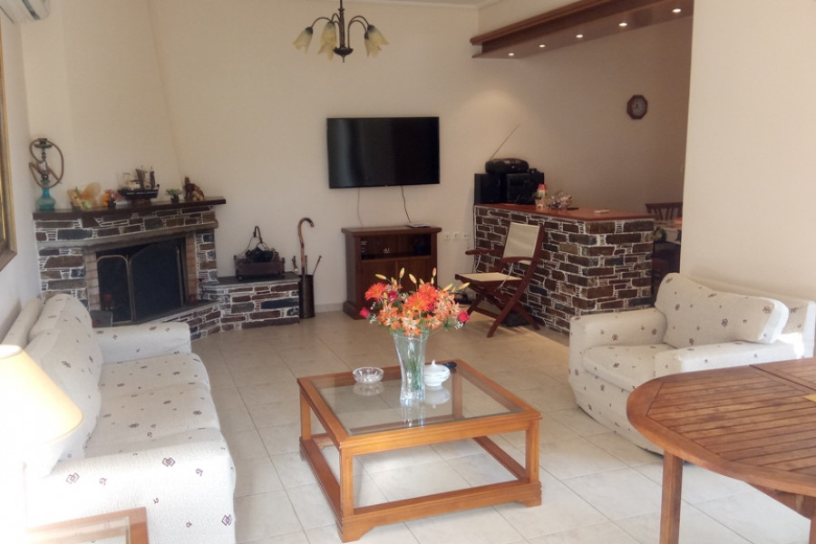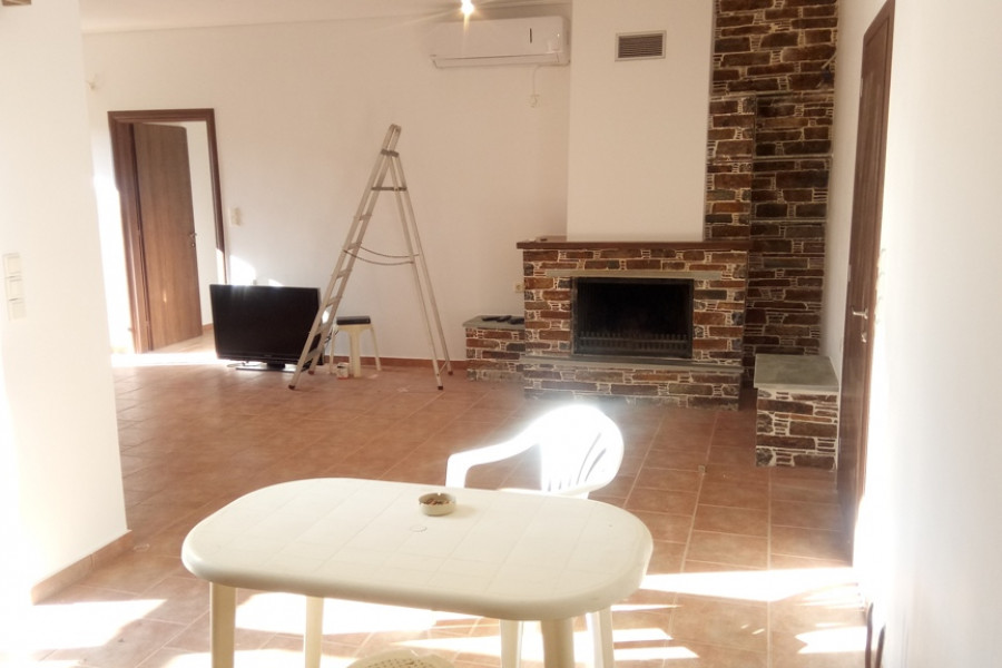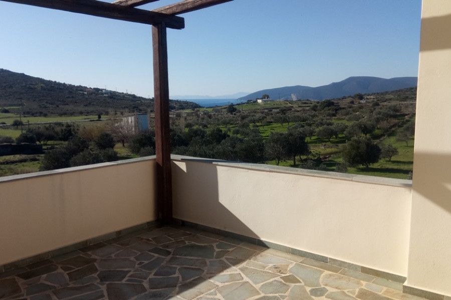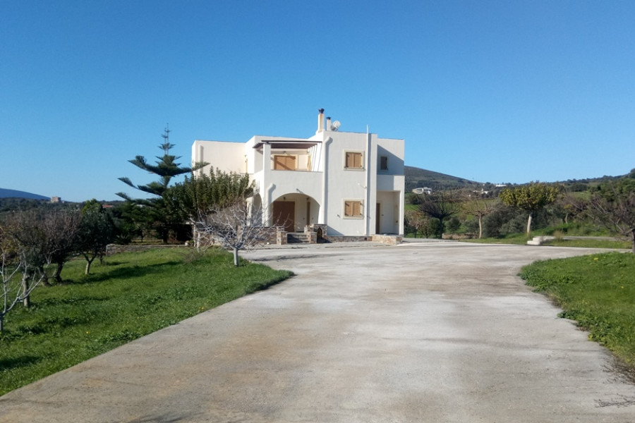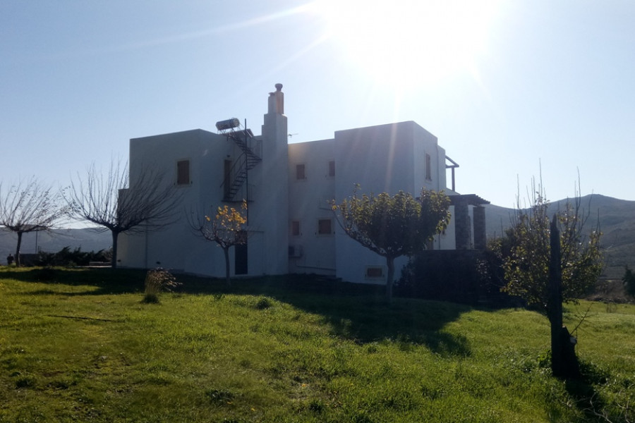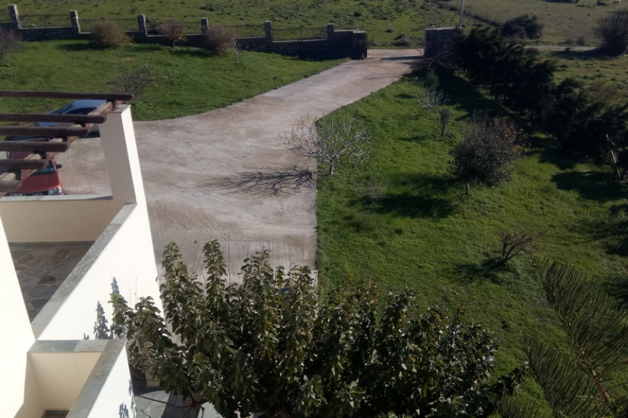 MARMARI, Lykorema, Einfamilienhaus von 260 m², Keller - Erdgeschoss - 1. Stock, Bau 05, auf einem Grundstück von 13.000 m², 5 Schlafzimmer (2 Master), 4 Badezimmer, Kamin, bestehend aus Wohnung im Erdgeschoss von 120 qm, 3 Schlafzimmer (1 Master) und 1 Etage Wohnung, 100 qm, 2 Schlafzimmer (1 Master) plus Keller von 40 qm, große Veranda Umfang, autonome Heizung, Klimaanlage, mit einer hervorragenden Aussicht der Berge und des Meeres. Ein Grundstück von 13.000 m², vollständig mit Zäunen, Pflastersteinen und Baumpflanzungen angelegt, weitere 150 Olivenbäume mit Wasserbohr- und Bewässerungssystem, 4, 5 km vom Zentrum von Marmari und 900 m vom Meer entfernt.