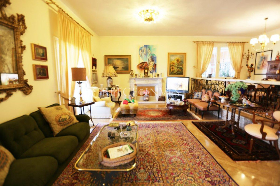 Die Villa befindet sich auf einer Anhöhe, umgeben von Pinienwald, mit Panoramablick auf das Meer. Die Architektur der Villa ist im italienischen Stil gehalten.