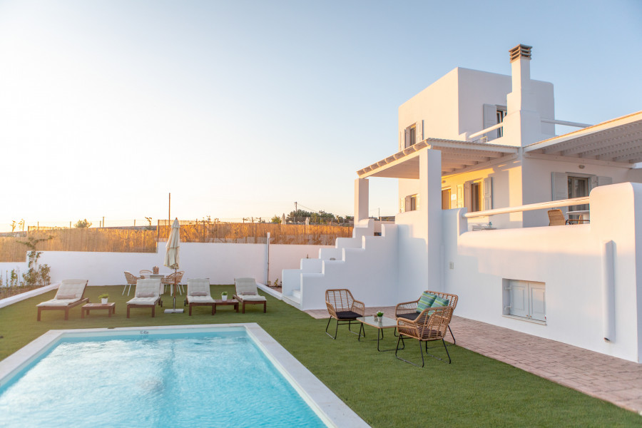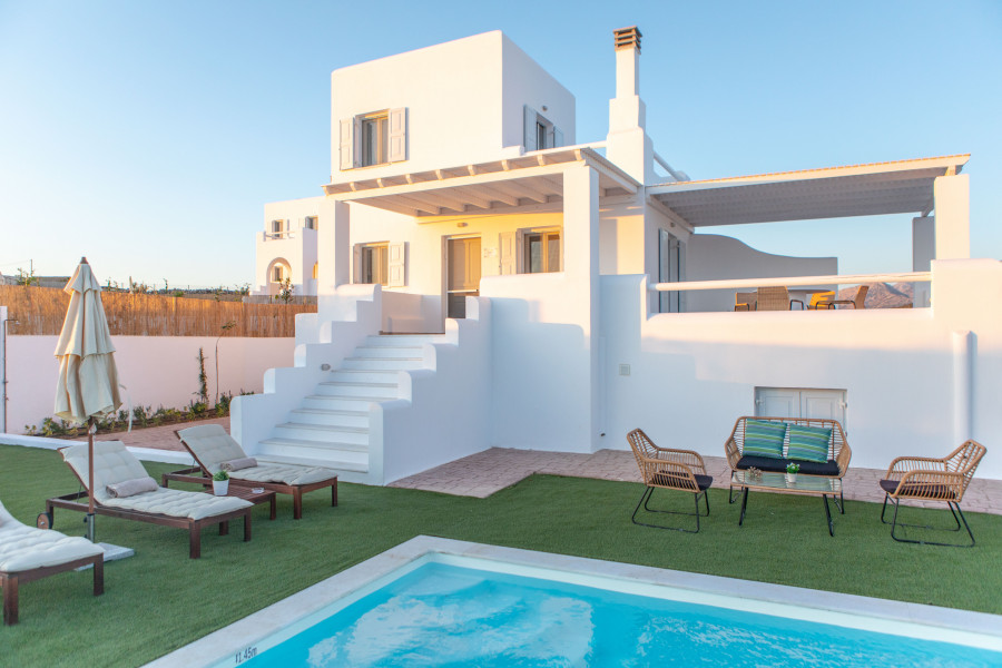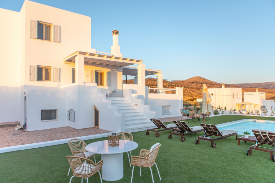 An der Südwestküste von Naxos in Pyrgaki, nur 100 Meter vom Meer entfernt, Es wurde ein Komplex von 26 unabhängigen Ferienvillen angelegt, die einen komfortablen, sicheren und angenehmen Aufenthalt bieten.