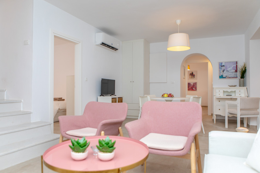 Das Semi-Erdgeschoss besteht aus ein zweites Wohnzimmer, drei Schlafzimmer, eine offene Küche und zwei Badezimmer mit Dusche. Diese Ebene hat auch eine unabhängige Außentreppe, die zum Garten führt.