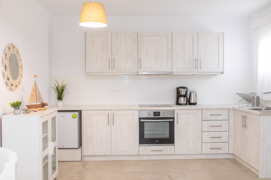 Das Erdgeschoss besteht aus a geräumiges Wohnzimmer mit Kamin, offene Küche, ein Schlafzimmer und ein Badezimmer mit Dusche. Es gibt auch eine geschützte Veranda mit Pergola, die zum Garten führt.