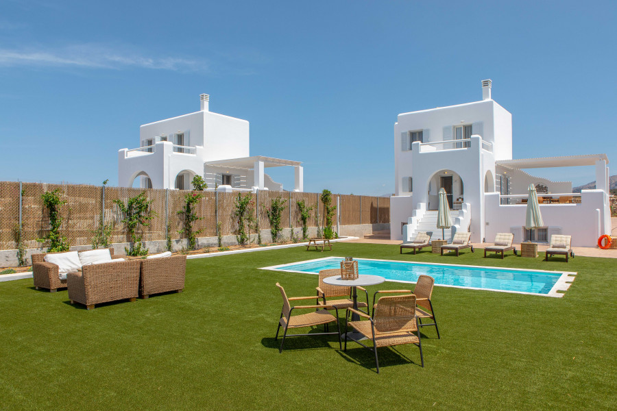 An der Südwestküste von Naxos in Pyrgaki, nur 100 Meter vom Meer entfernt, Es wurde ein Komplex von 26 unabhängigen Ferienvillen angelegt, die einen komfortablen, sicheren und angenehmen Aufenthalt bieten.