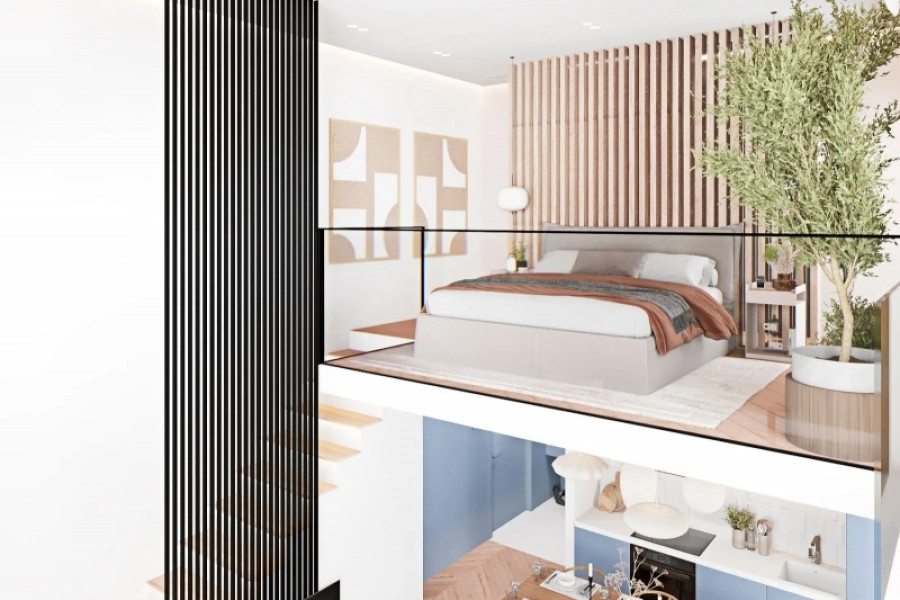 Τέλος, στο δώμα των οικοδομών δημιουργείται ακόμη ένα διαμέρισμα 52 τμ με ενιαία κουζίνα, τραπεζαρία, καθιστικό, λουτρό και υπνοδωμάτιο με ντουλάπα. Στην όψη προς το οικόπεδο διαμορφώνεται μια μεγάλη βεράντα με καθιστικό. Τα διαμερίσματα του δώματος των πολυκατοικιών που έχουν τοποθετηθεί στη νότια πλευρά του οικοπέδου έχουν θέα προς τη θάλασσα.