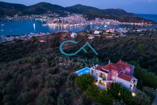 Home zum Verkauf in Oikismos, Galatas für 2, 500.000 € (Auflistung Nr. 6508). Ein weiteres Eigentum, das Ihnen von Casa Futura zu Ihnen gebracht wurde. Diese luxuriöse Immobilie befindet sich im Verwaltungsgebiet Ermioni, Region Argolis, und ist ab sofort zum Verkauf angeboten. Da es sich um ein neoklassisches, distanziertes Haus handelt, ist es etwa 450 m² groß, wobei die Landgröße etwa 7500 m² liegt. Das im Jahr 2018 errichtete Gebäude wurde nach den höchsten Marktstandards abgeschlossen, die durch die verfügbaren Fotos mit der Auflistung begleitet werden können.