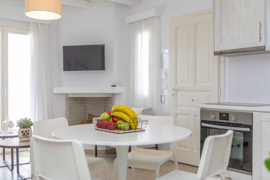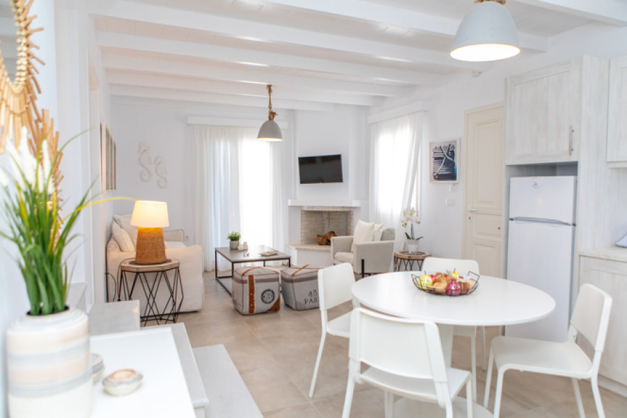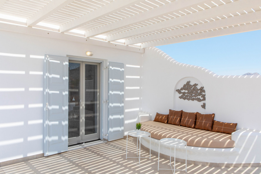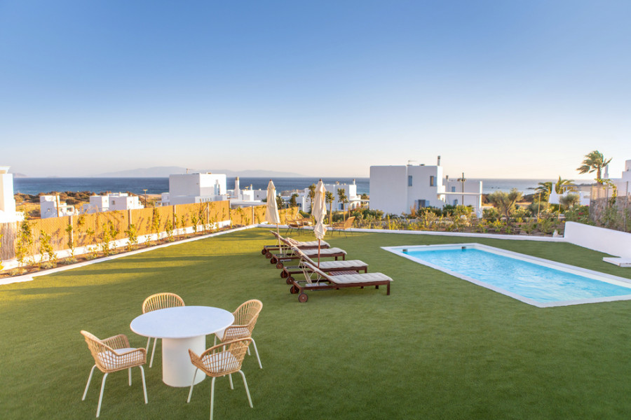 Panoramablick auf das Meer, die herrliche Naturlandschaft der Kykladen, ein geschützter südlicher goldener Sandstrand und die Ruhe der Gegend bilden die ideale Umgebung für Entspannung und Regeneration.