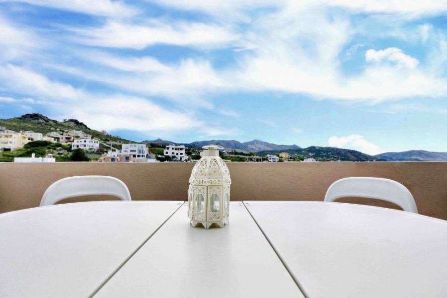 Jede Wohnung ist völlig autonom und verfügt über eine eigene solare Warmwasserbereitung, Heizung, Uhrenzähler und Klimaanlage. Es verfügt über einen separaten Eingang und einen privaten Parkplatz für ein Auto. Alle Veranden bieten einen atemberaubenden Blick auf die Berge. Die Veranden in der zweiten Etage bieten Meerblick.
