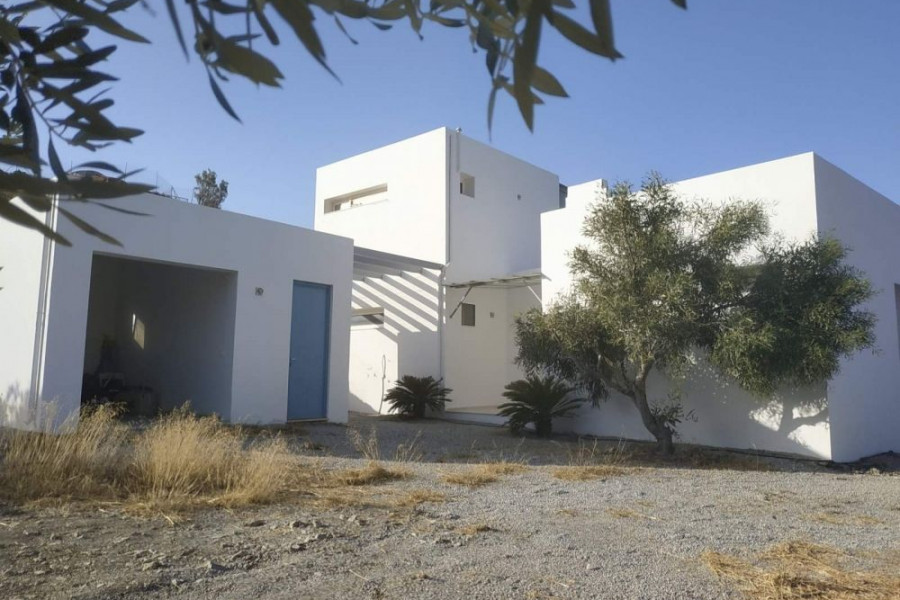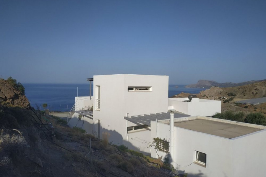 Einfamilienhaus zum Verkauf in Lentas, mit endlosem Blick auf das Libysche Meer und die umliegenden Hügel. Das geräumige Interieur bietet Komfort und Eleganz und die Konstruktion ist von hoher Qualität. Das Haus ist ideal für ein Ferienhaus, weil in der Nähe des Meeres und der Natur liegt.
