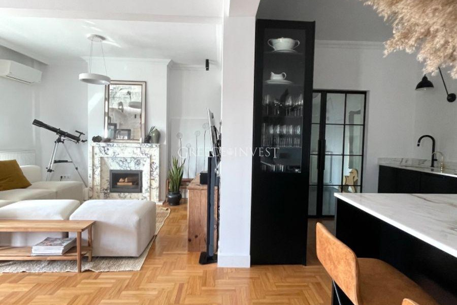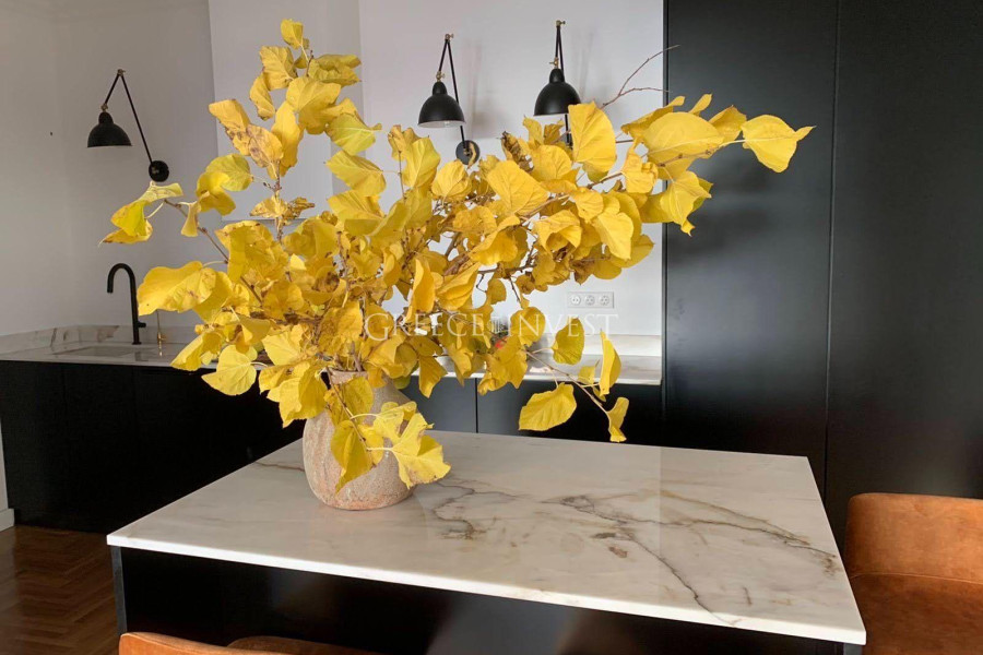 Wunderschönes Penthouse, kürzlich renoviert, nur wenige Schritte von der neuen Uferpromenade mit Meerblick. Die Renovierung wurde im modernen Stil mit Elementen des Neoklassizismus durchgeführt, unter Verwendung von teuren und hochwertigen Materialien und gemäß den Prinzipien des Feng Shui.