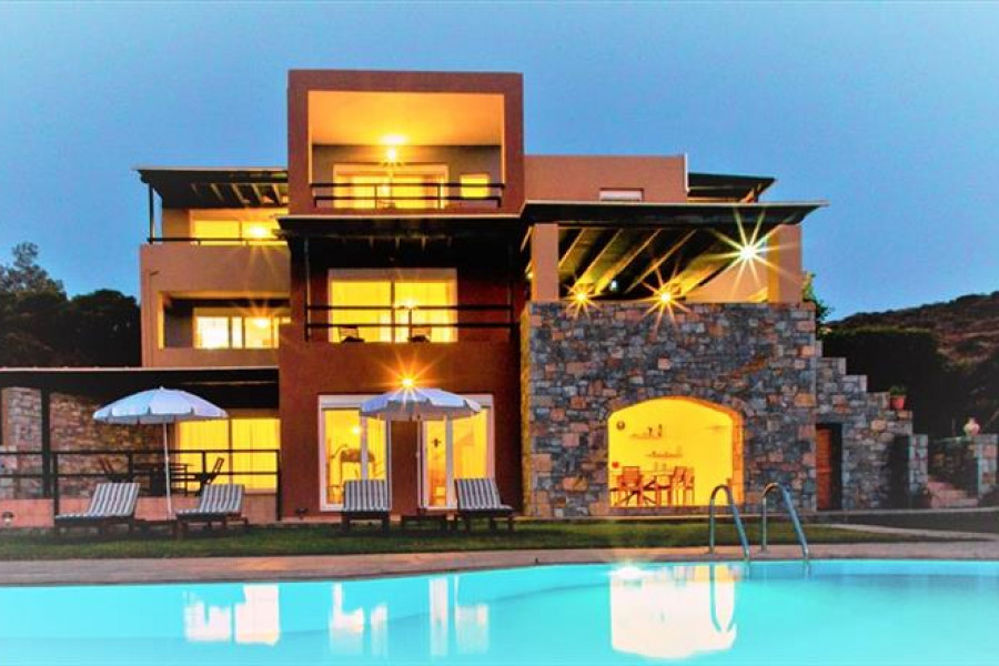 Verkauf 3-Etage Villa Wohnflaeche 510 q.m auf Kreta. Das Kellergeschoss besteht ausein Schlafzimmer, eine Dusche, eine Abstellraum.