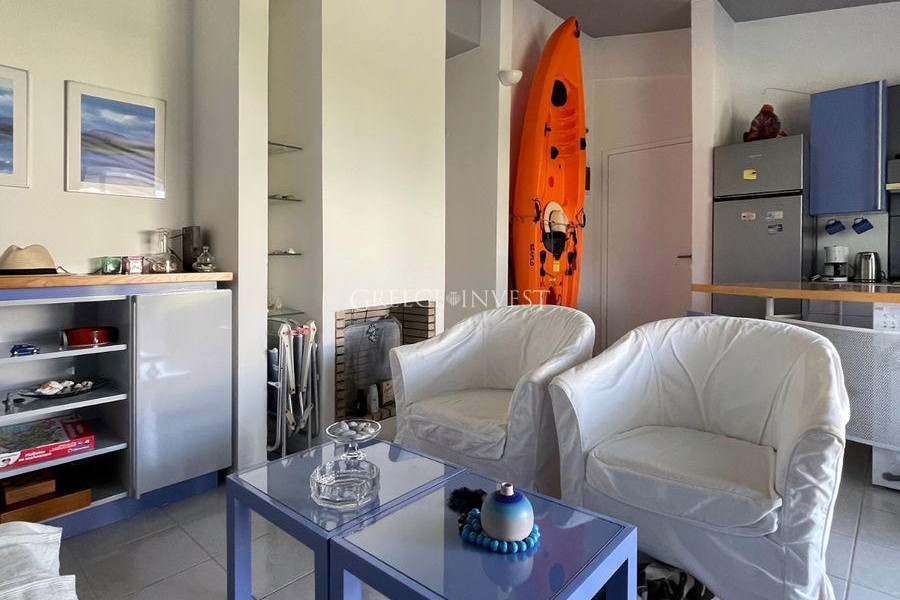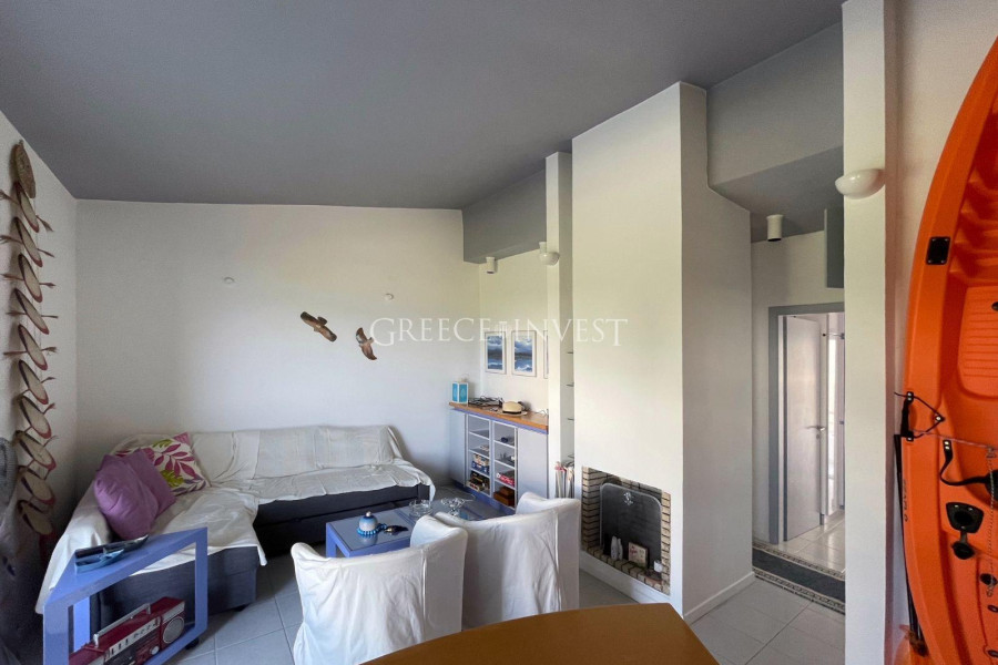 Zum Verkauf steht eine Wohnung in Pefkochori, Chalkidiki. Die Wohnung verfügt über ein Wohnzimmer mit Küche, 2 Schlafzimmer, ein Badezimmer und eine Gesamtfläche von 55 m2. Sie ist voll möbliert und verfügt über einen Parkplatz. Die Wohnung befindet sich in einer gepflegten grünen Anlage direkt am Strand. Sie verfügt über einen Balkon, eine Klimaanlage und einen Kamin.