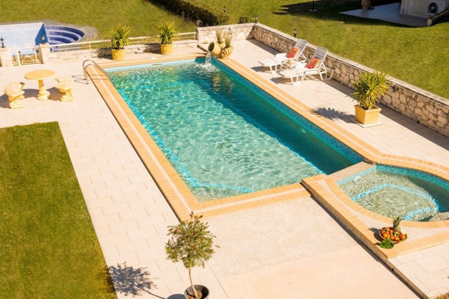 Villa mit einer Gesamtfläche von 700 m2: 500 m2 auf der ersten Ebene und 200 m2 auf der zweiten Ebene. Gesamtgrundstücksfläche 4.000 m2