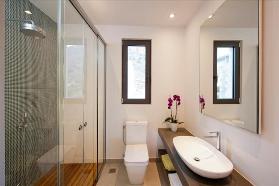Verkauf 3-Etage Villa Wohnflaeche 400 q.m auf Kreta. Das Untergeschoss besteht aus 2 Schlafzimmern, 2 Badezimmer mit Dusche, eine Abstellraum.