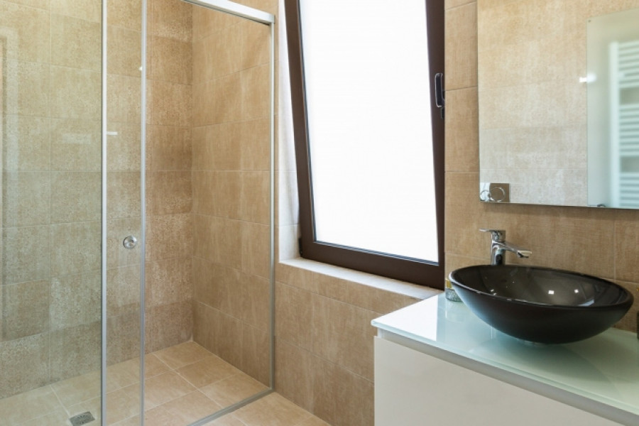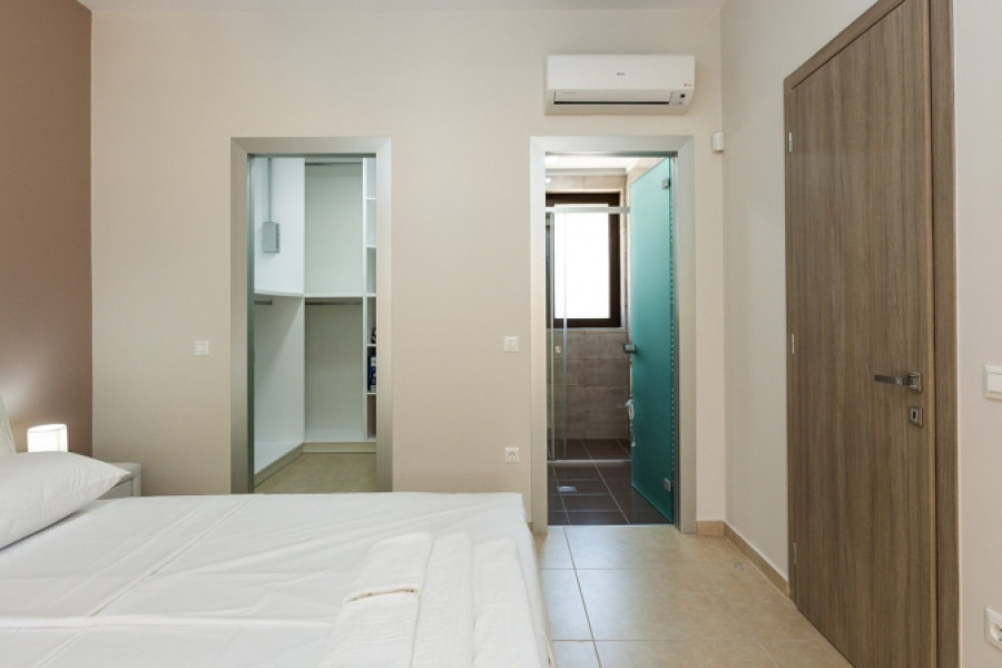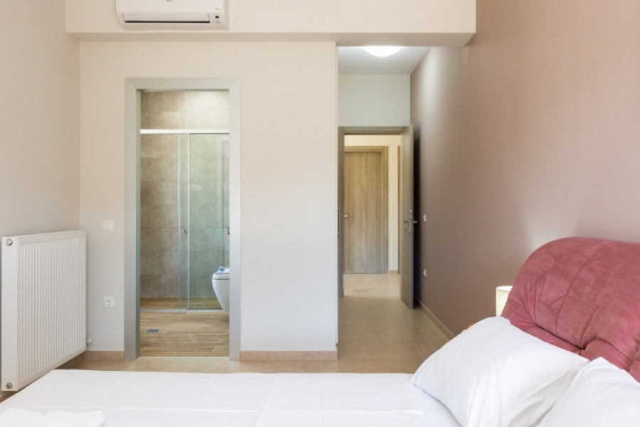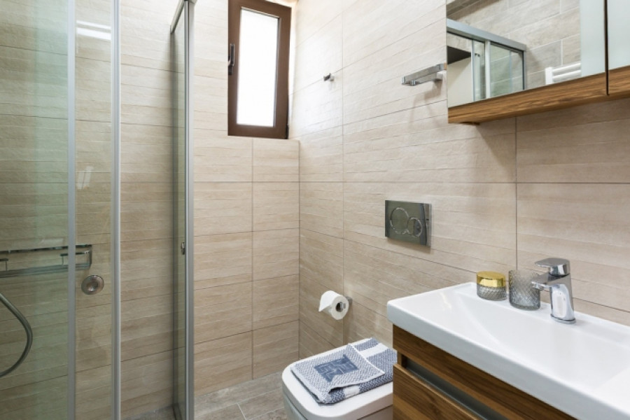 TECHNICAL SPECIFICATIONS: -Proper placement for maximum ventilation κ lighting, guiding the view; -Natural materials used in construction (Stone, Glass, Wood) and the corresponding design methods; -Electric κ Solar water heater for hot water; -Built-in kitchen; -With electrical appliances (fridge, oven, stove, extractor hood and dishwasher); -Additional water tank for greater autonomy; -Inox protective staircase glass railings; -Wardrobes in all bedrooms; -Bathroom κ WC Accessories; -Italian floor tiles; -Private swimming pool; -Outdoor shower by the pool; -BBQ κ sink with wooden pergola; -Channels air conditioning system for supplying cold and hot air through air ducts; -Aluminum windows and external doors’ frames with double, heat-insulating glazing, fitted insect nets and electrically-operated rolling shutters;