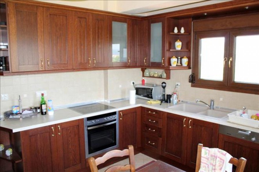 Verkauf 3-Etage Einfamilienhaus Wohnflaeche 235 q.m auf Sithonia (Chalkidiki). Das Kellergeschoss besteht aus3 Schlafzimmern, Wohnküche, eine Dusche.