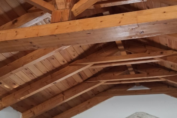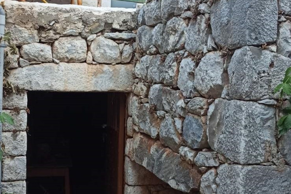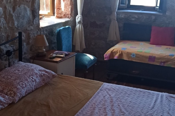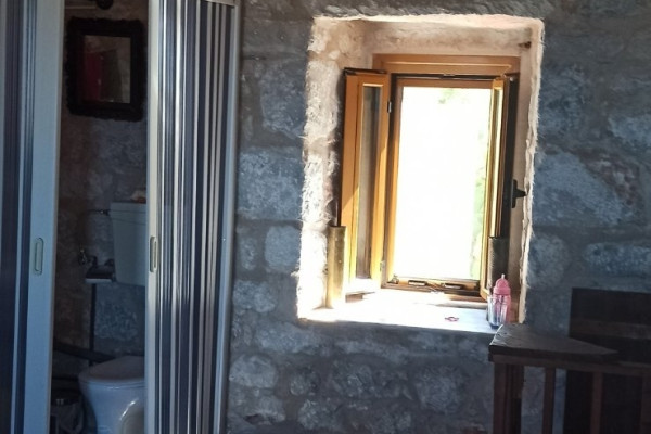 Verkauf Einzelhaus , Oitylo , Vamvaka 130 quadratmeter , Erdgeschoss , 3 zimmer , 2 ebenen , 2 schlafzimmer , 1 bäder , 1 WC , 1 parkplätze , 1966 baujahr , features: Abstellraum, Feuerstelle/Kamin , Doppelverglasung, Terrassen, Investition, aus Stein, Traditionelles Haus, Schloss, Luftig, Vorderseite, Hell, Klimaanlage, Rasen, Bäume, Garten , Renoviert, Landhaus, Keiner 1 kamine , blick :Meer , preis: 150.000€