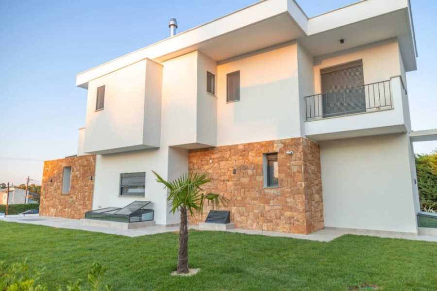 ID Immobilien: HPS2923 - Pefkochori, neugebaut Einfamilienhaus Fassade 3 Etagen ZU VERKAUFEN Wohnfläche von ca. 150 m2, im Erdgeschoss. Besteht aus 5 Schlafzimmer, offene Wohnküche, 3 Bäder . Wurde im Jahr 2022 gebaut verfügt über Fernblick Blick, Fenster und Türen: Aluminium, Parkplatz, Lager, Garten, Kamin, Pool, Blick, hell, Solar Boiler , gestrichen - Kaufpreis: 700.000 €